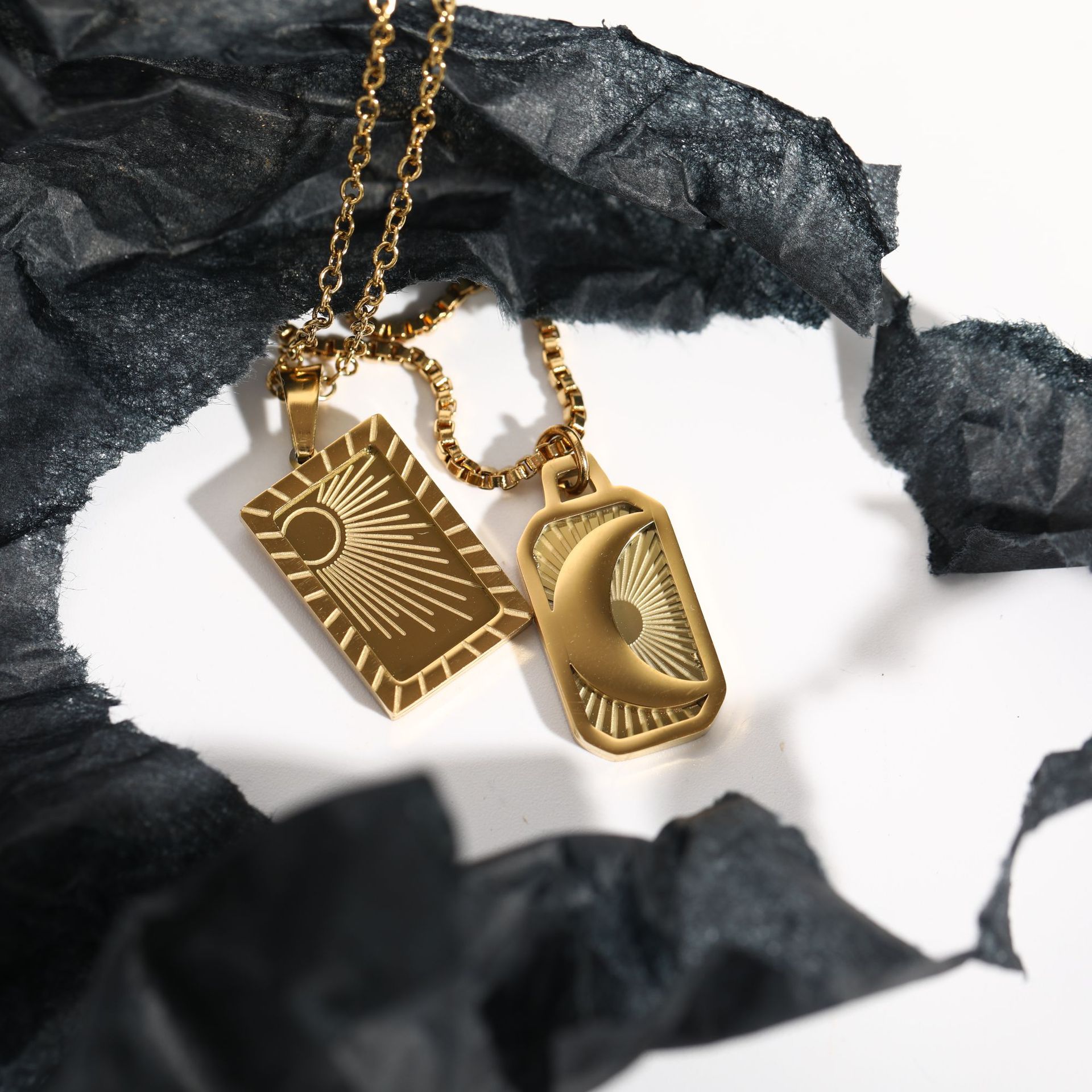 Product Size: Sun type: 4.2g, pendant 1.2*1.9cm, chain length 41 6cm(O-shaped chain)