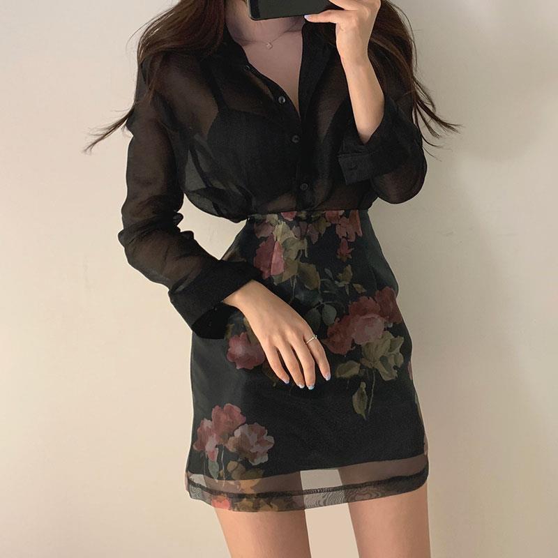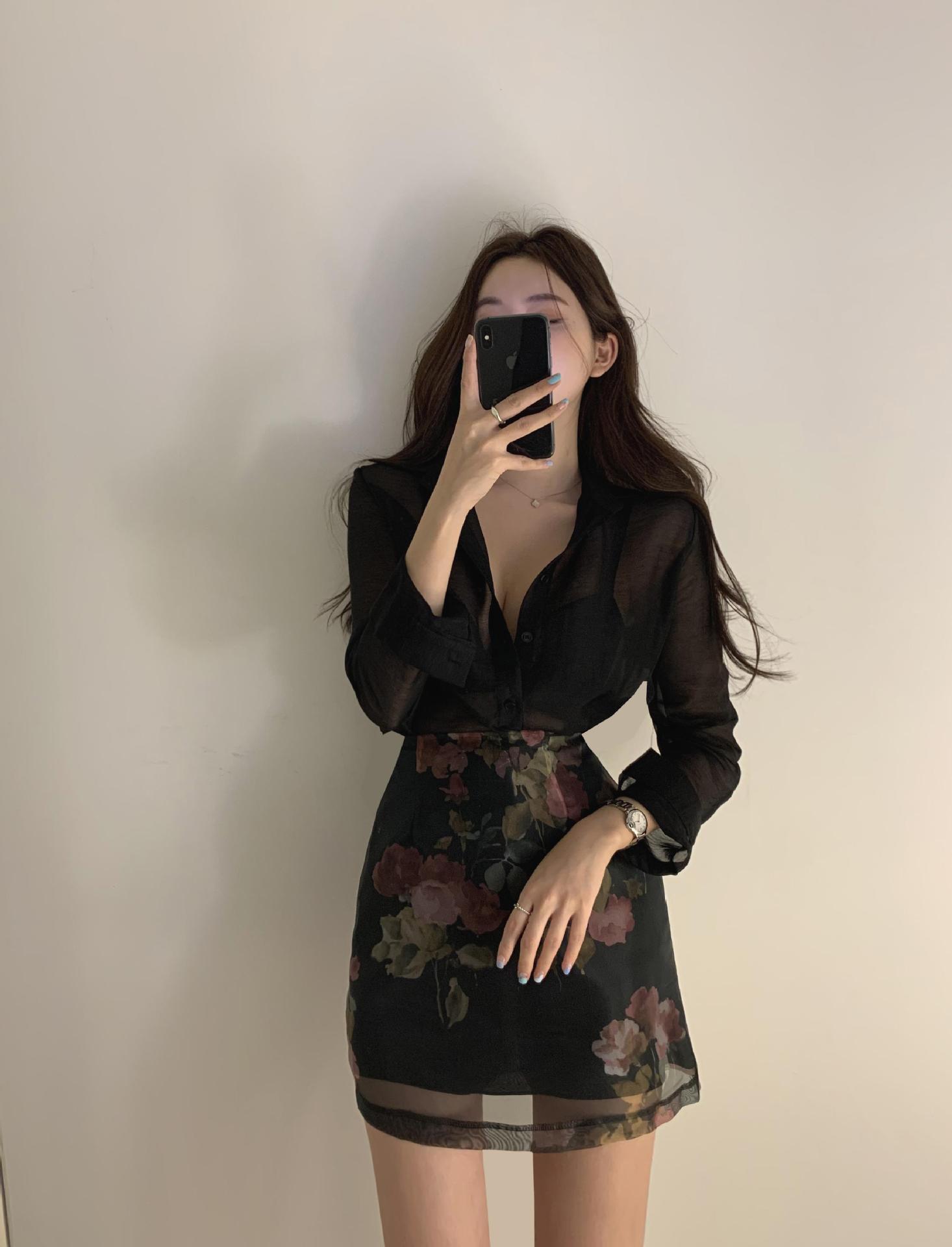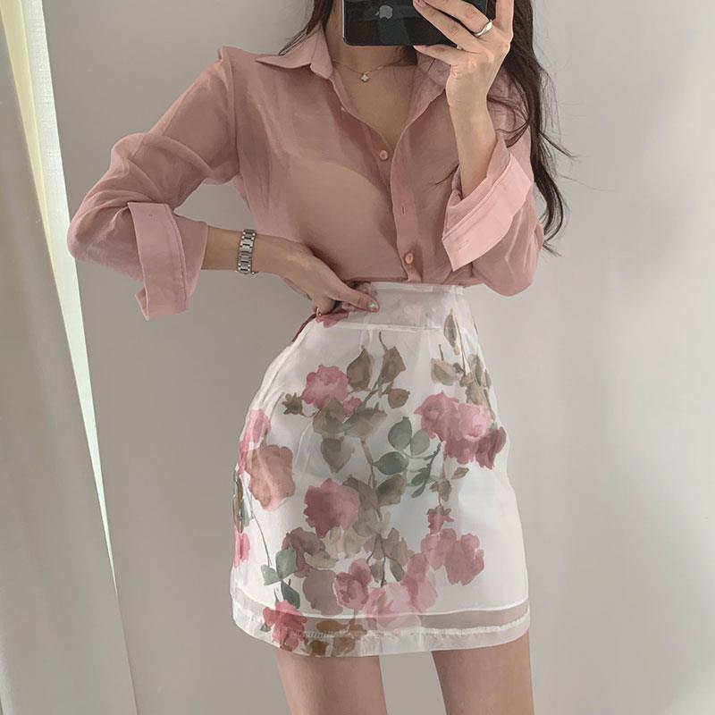 Color: Pink shirt, white skirt, black shirt, black overskirt