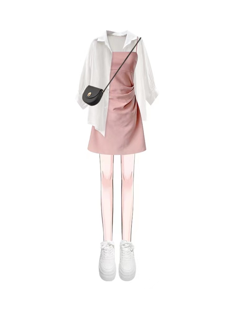 Color:5035 white shirt M670 pink suspender skirts
