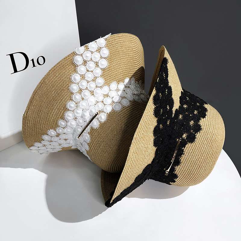 Color: Straw Hat-Black Lace, Straw Hat-White Lace