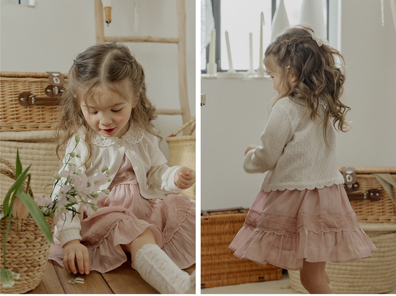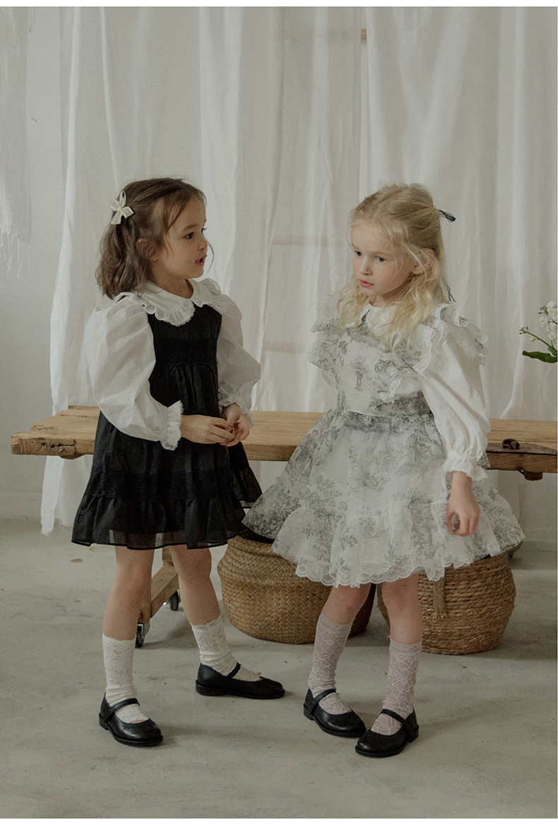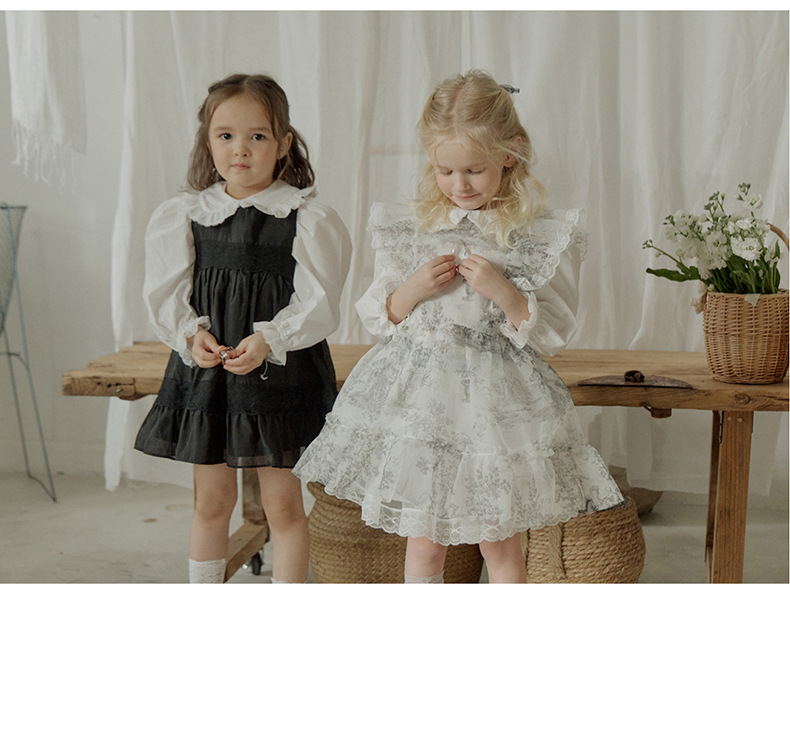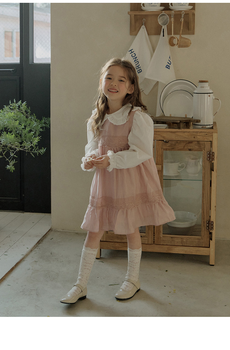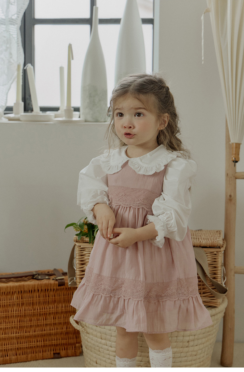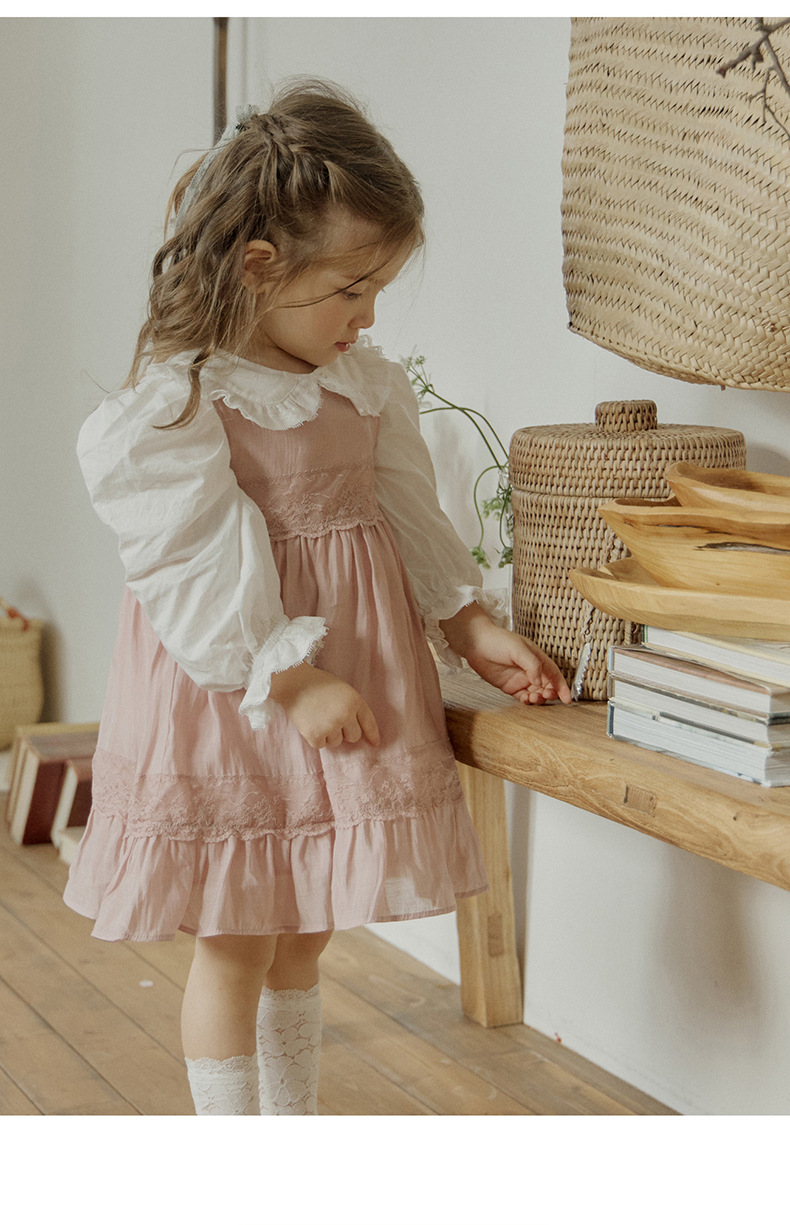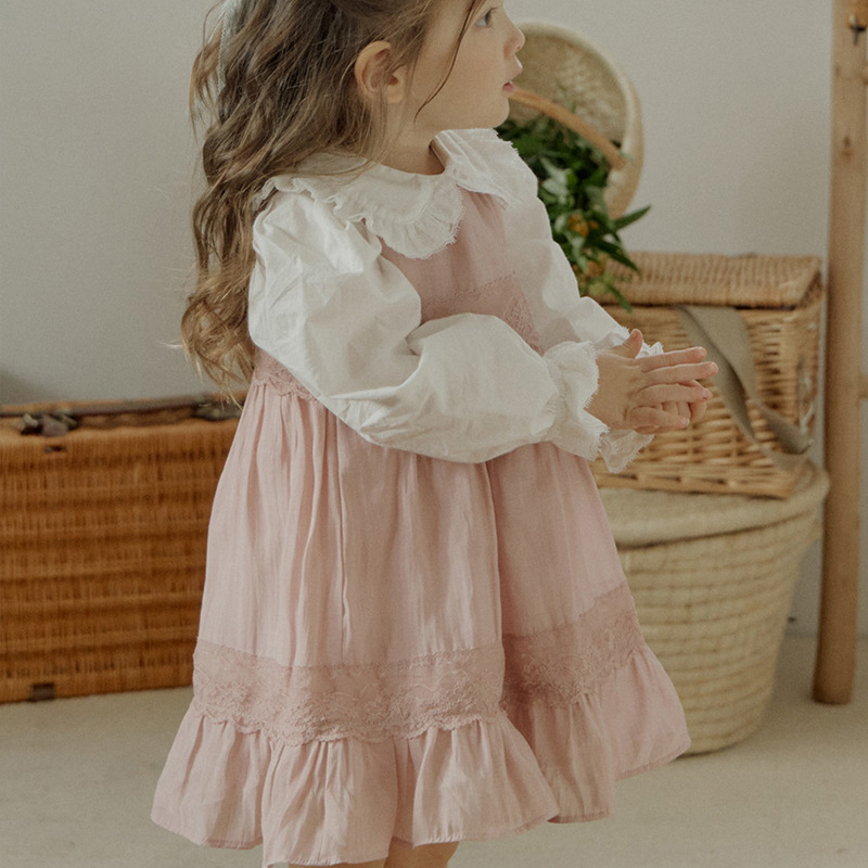 Sundress Children Girl French Lace Cotton Princess Dress Shirt