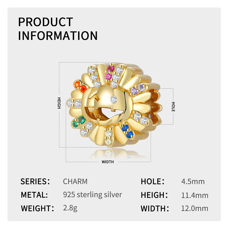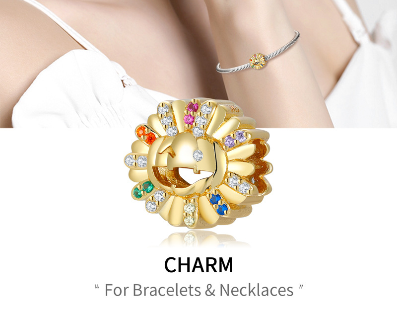 Sunflower Pumpkin Head Beads Halloween Series 925 Sterling Silver Gold-plated Bracelet Diy Beads