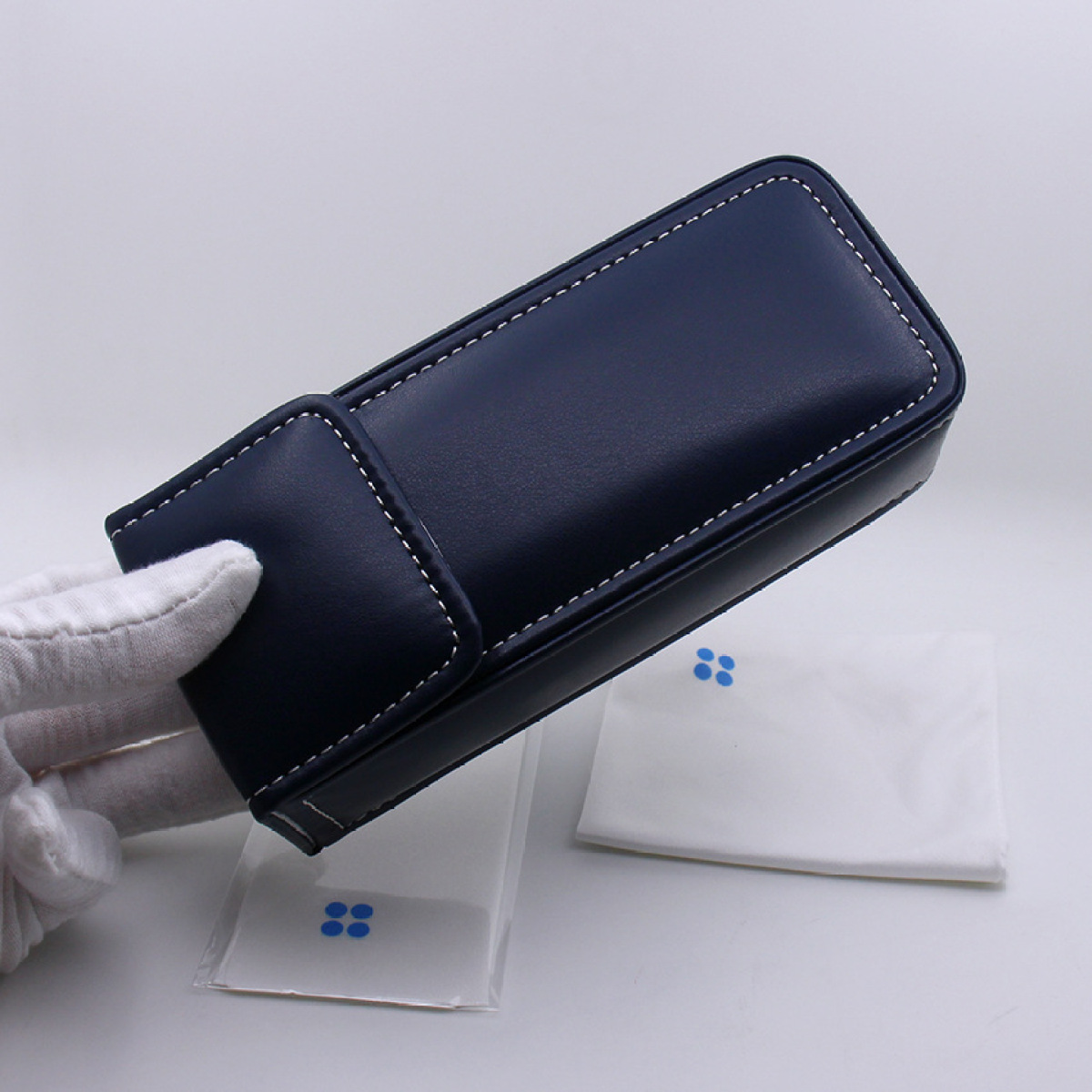Specification:Material: LeatherUse: Glasses caseColor: Dark bluePacking list: