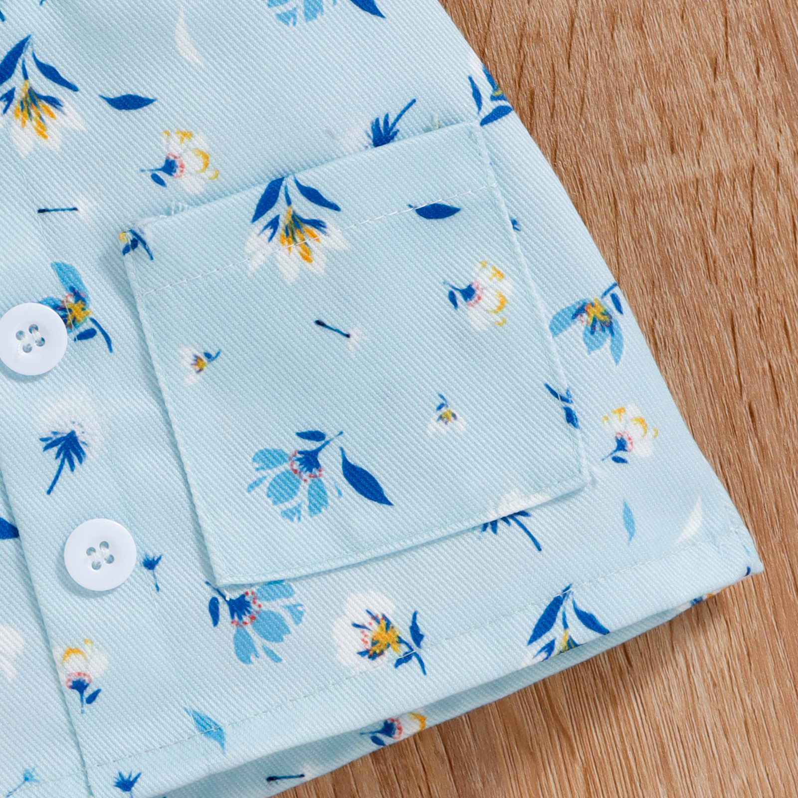 Sunken Stripe Cotton Short-sleeved Flower Suspender Skirt Infant Suit