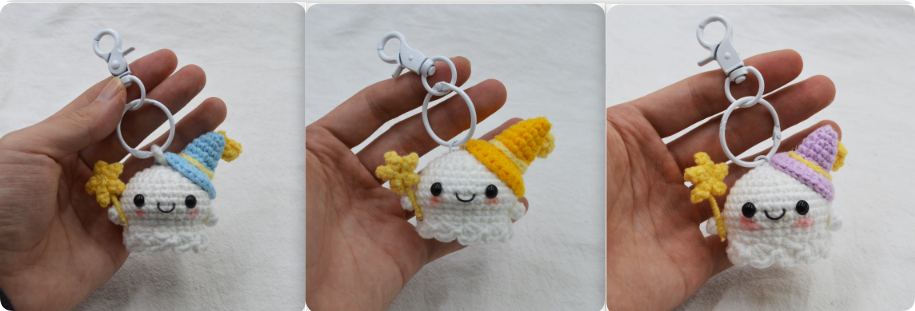 Color: ghost doll (white buckle), ghost doll (dog head buckle), ghost doll, ghost doll (yellow hat), ghost doll yellow hat (white buckle), ghost doll yellow hat (dog head buckle), ghost doll (blue hat), ghost doll blue hat (white buckle), ghost doll blue hat (dog head buckle), clear sky doll white clouds - multi accessories, clear sky doll white clouds - wire loop, clear sky doll orange flowers - multi accessories,Haruhi doll orange flowers - wire loop,Haruhi doll + peace and happiness - multi accessories