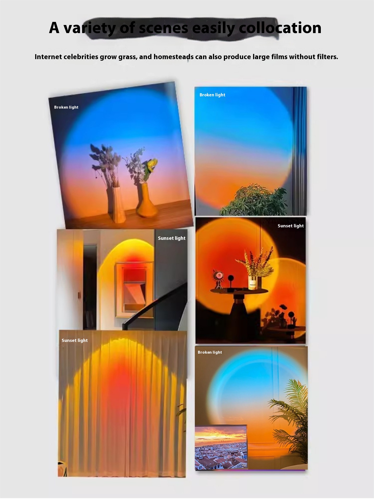 Color temperature: sunset light, broken light