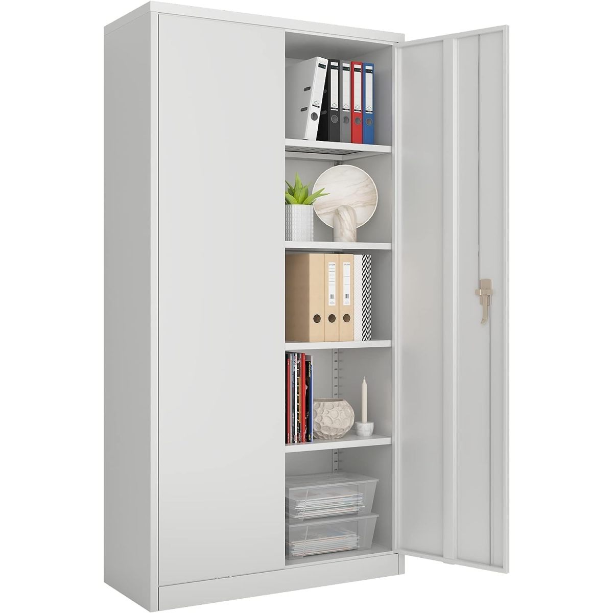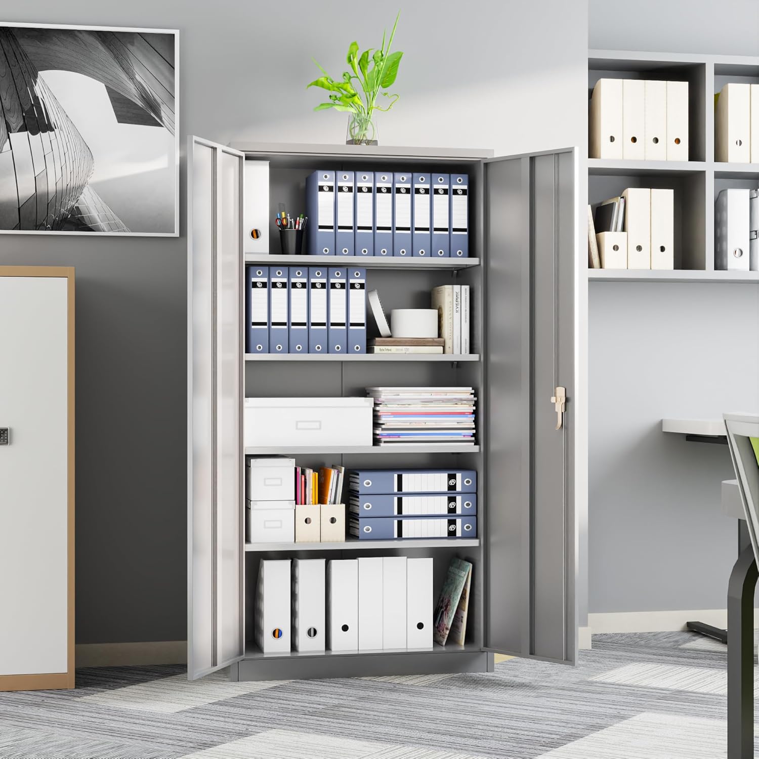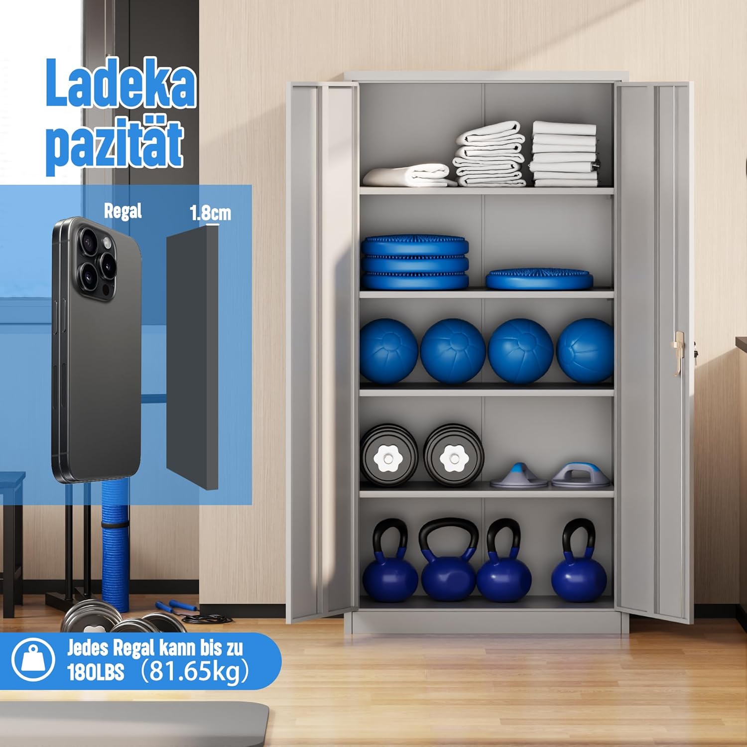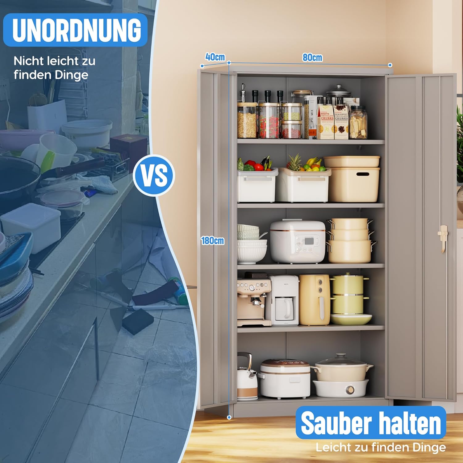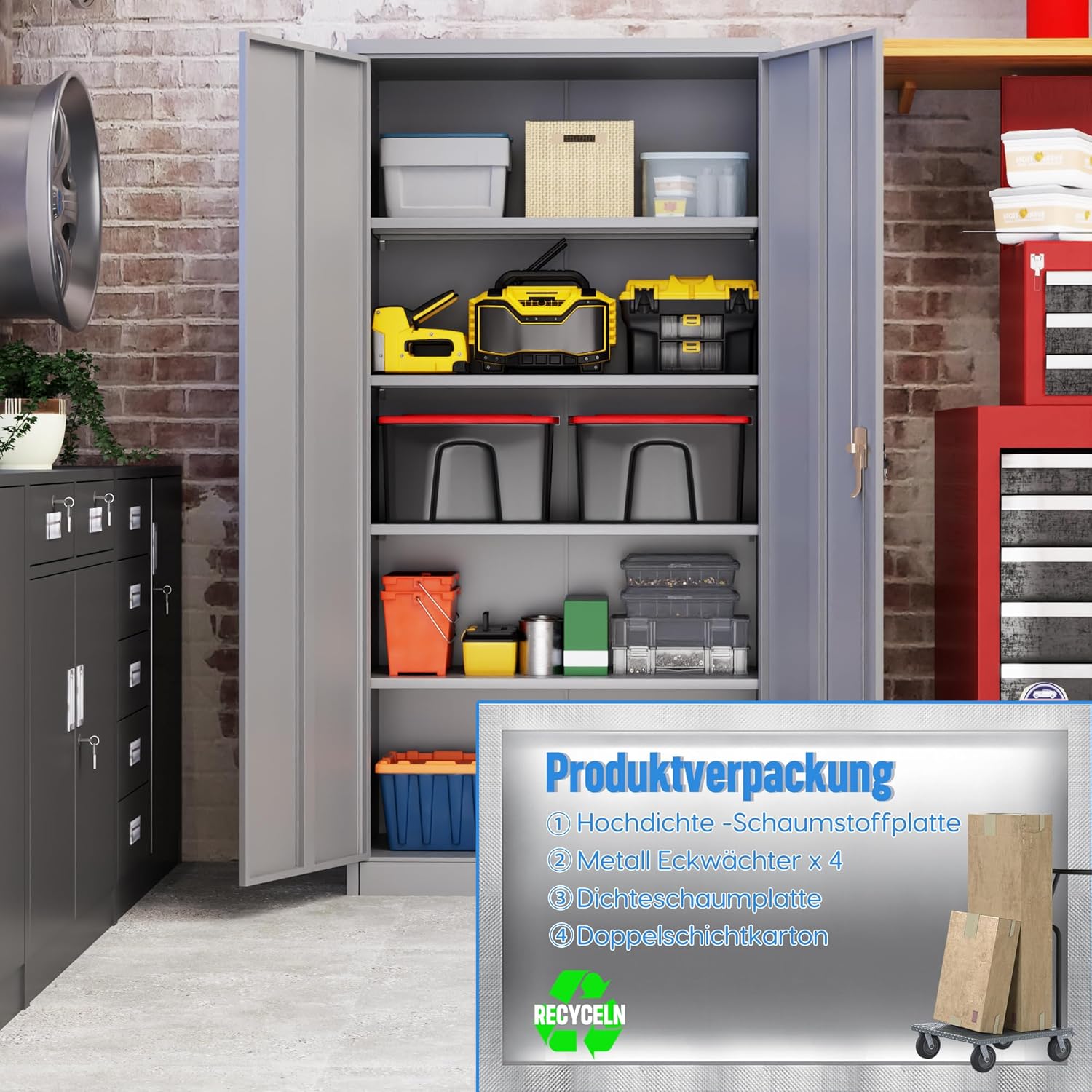 SUPEER 180 Cm High Steel Cabinet, Metal Storage Cabinet With 2 Doors And 4 Adjustable Shelves, Suitable For Home, Warehouse, Garage, Office, Easy Assembly Required Grey