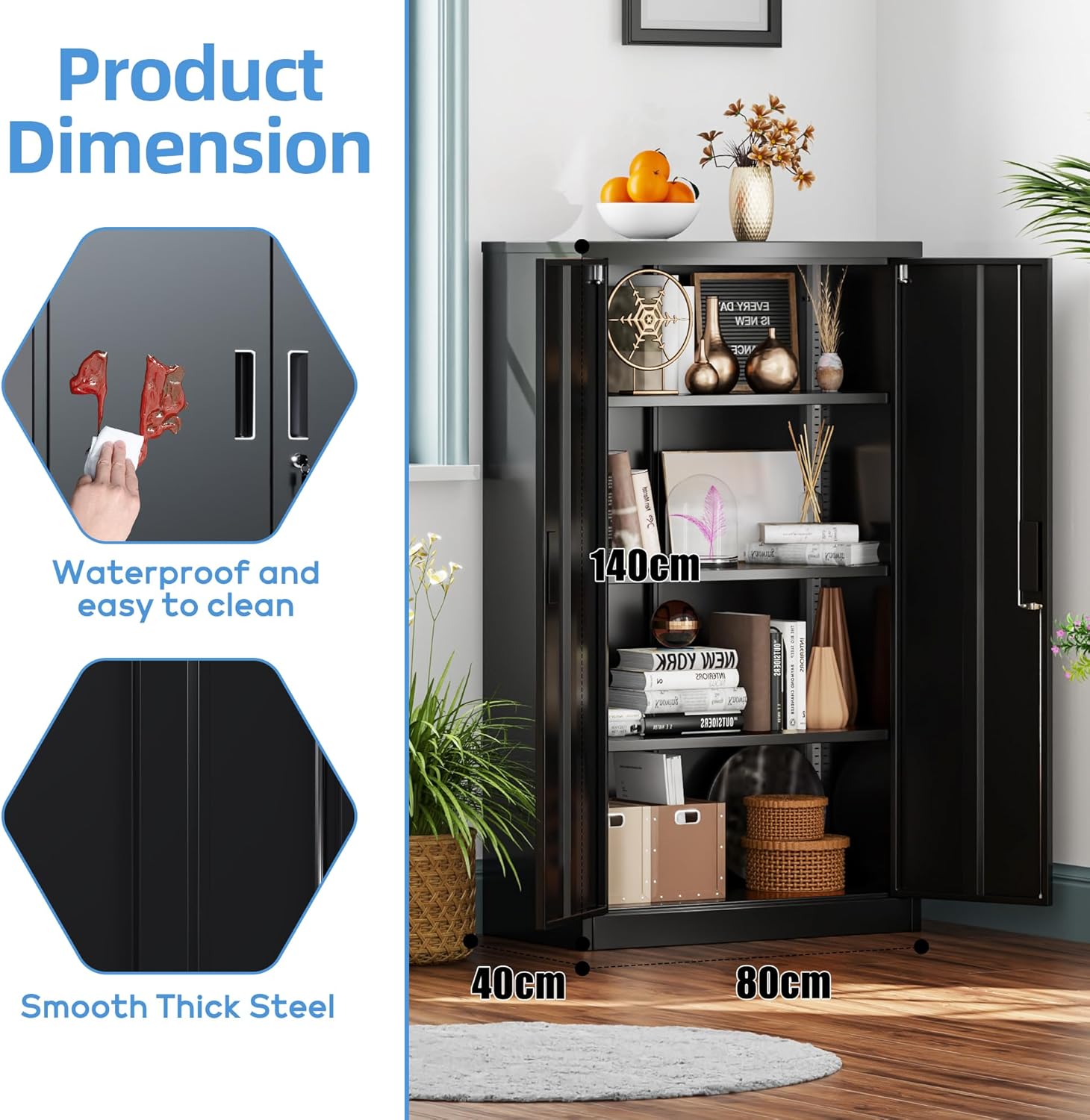Spacious storage: With dimensions of 140 x 80 x 40 cm with height-adjustable shelves that can hold up to 60 kg each, these cabinets offer ample storage space and versatile organisation options.