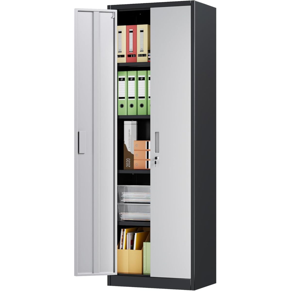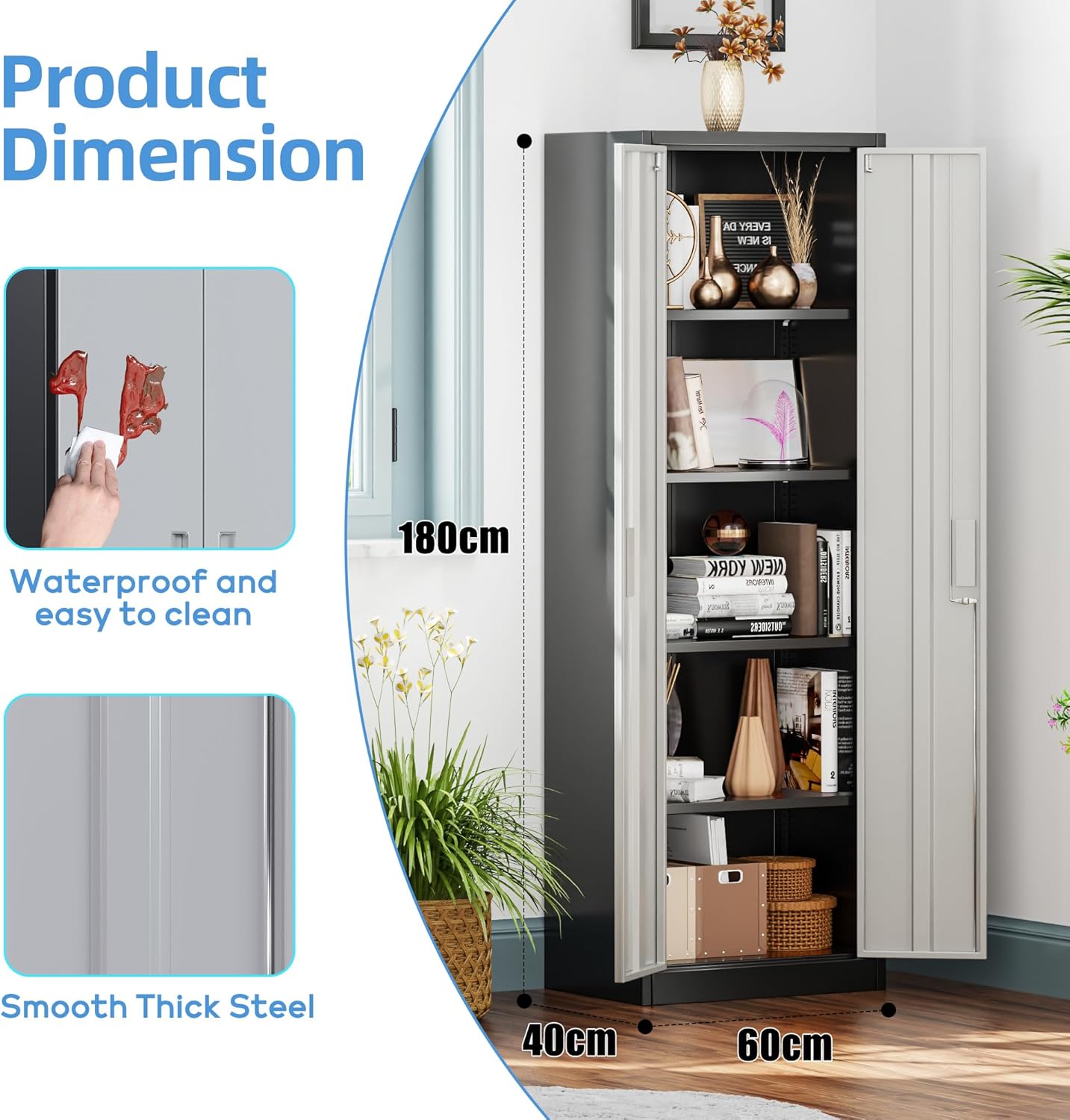SUPEER Filing Cabinet, Metal Cabinet With 4 Height-Adjustable Shelves, Sheet Steel Powder Coating, Steel Cabinet For Tools, Garage, H 180 Cm X W 60 Cm X D 40 Cm