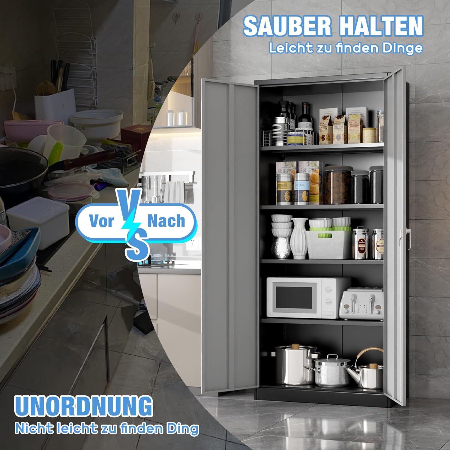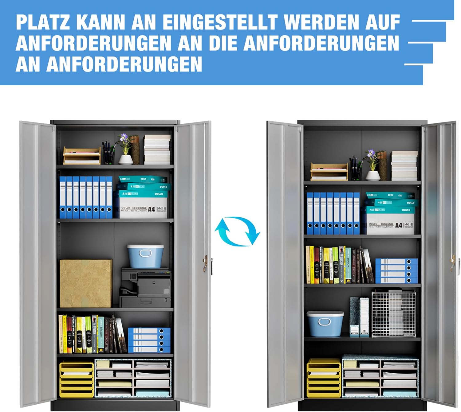Spacious storage: With dimensions of H 180 cm x W 80 cm x D 40 cm and 4 adjustable shelves that can each hold up to 120 pounds (54.4 kg), these cabinets offer plenty of storage space and versatile organisation options.
