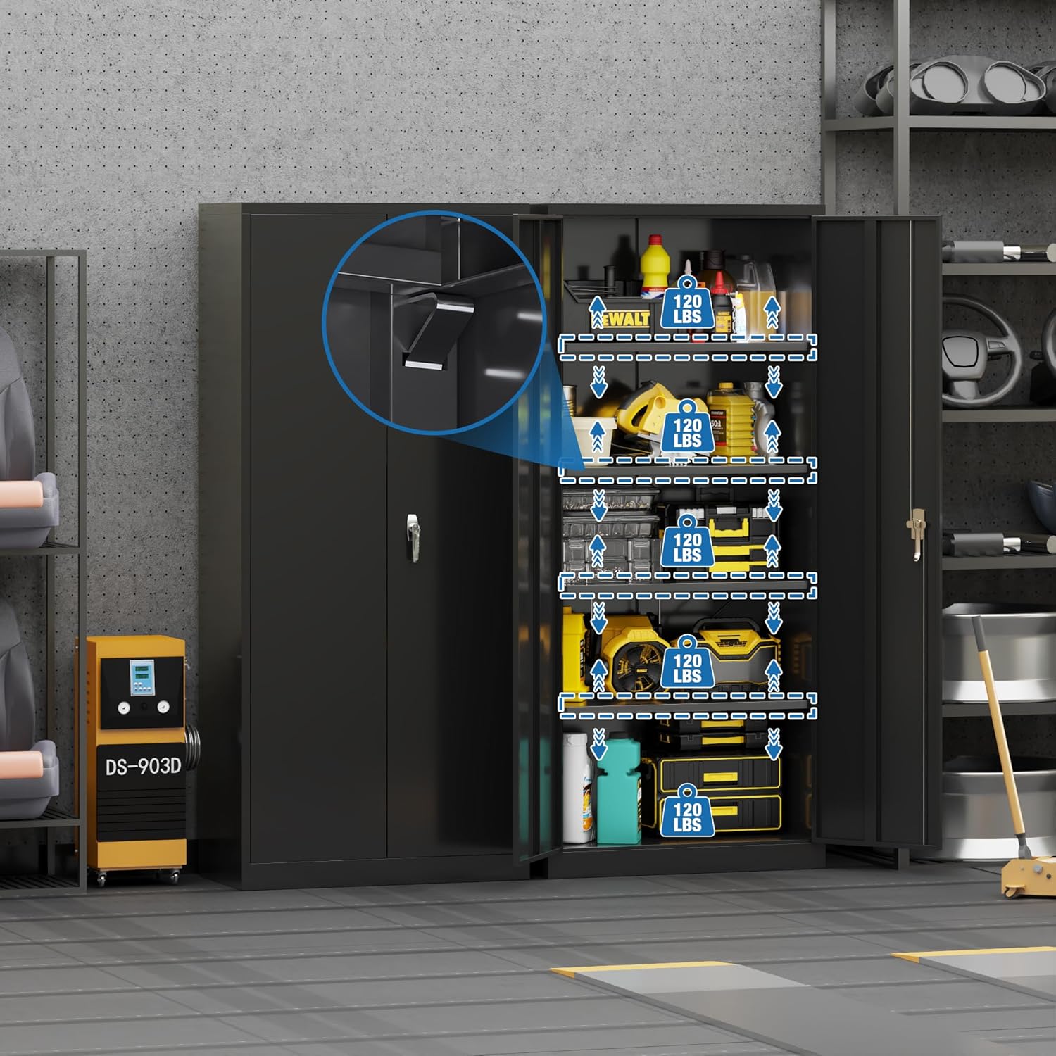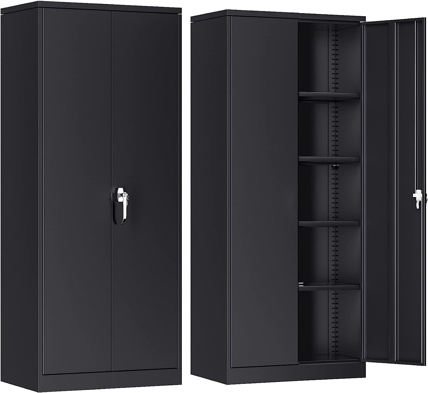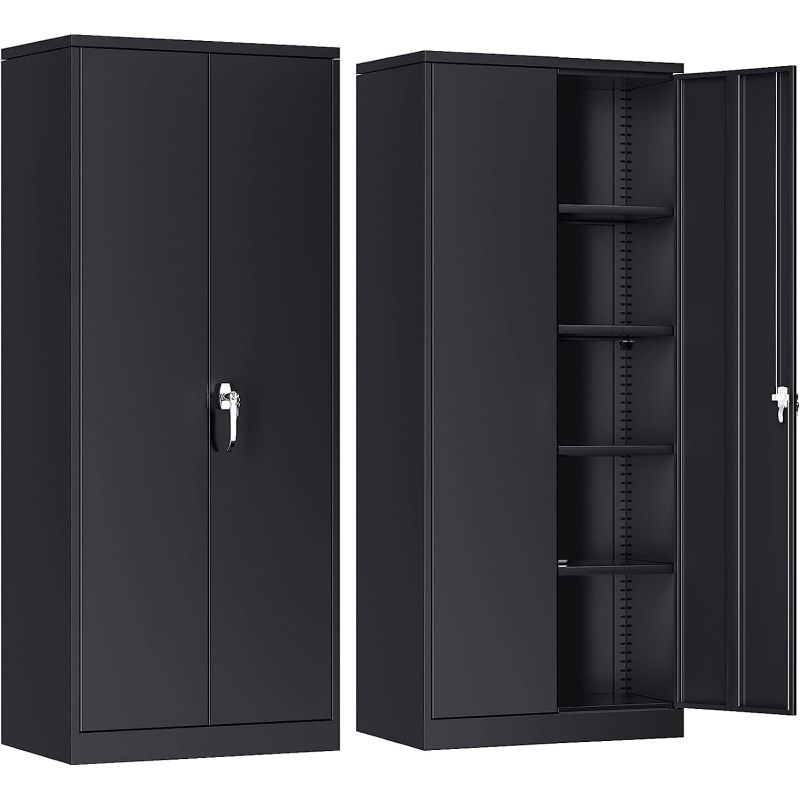 SUPEER Metal Storage Cabinet With 2 Door And 4 Adjustable Shelves,180CM Tall Steel Cabinet For Warehouse,Garage,Home,Office,Easy Assemble Required Black