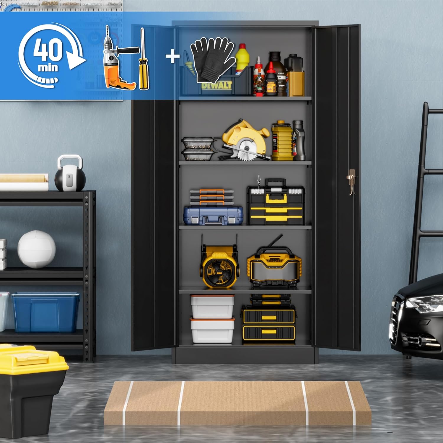 【Easy Assemble】 This metal storage cabinet is knock down structure,we provide the step by step manual that help customer assemble the cabinet.If you have any question,please feel free to contact our customer service at 24 hours.