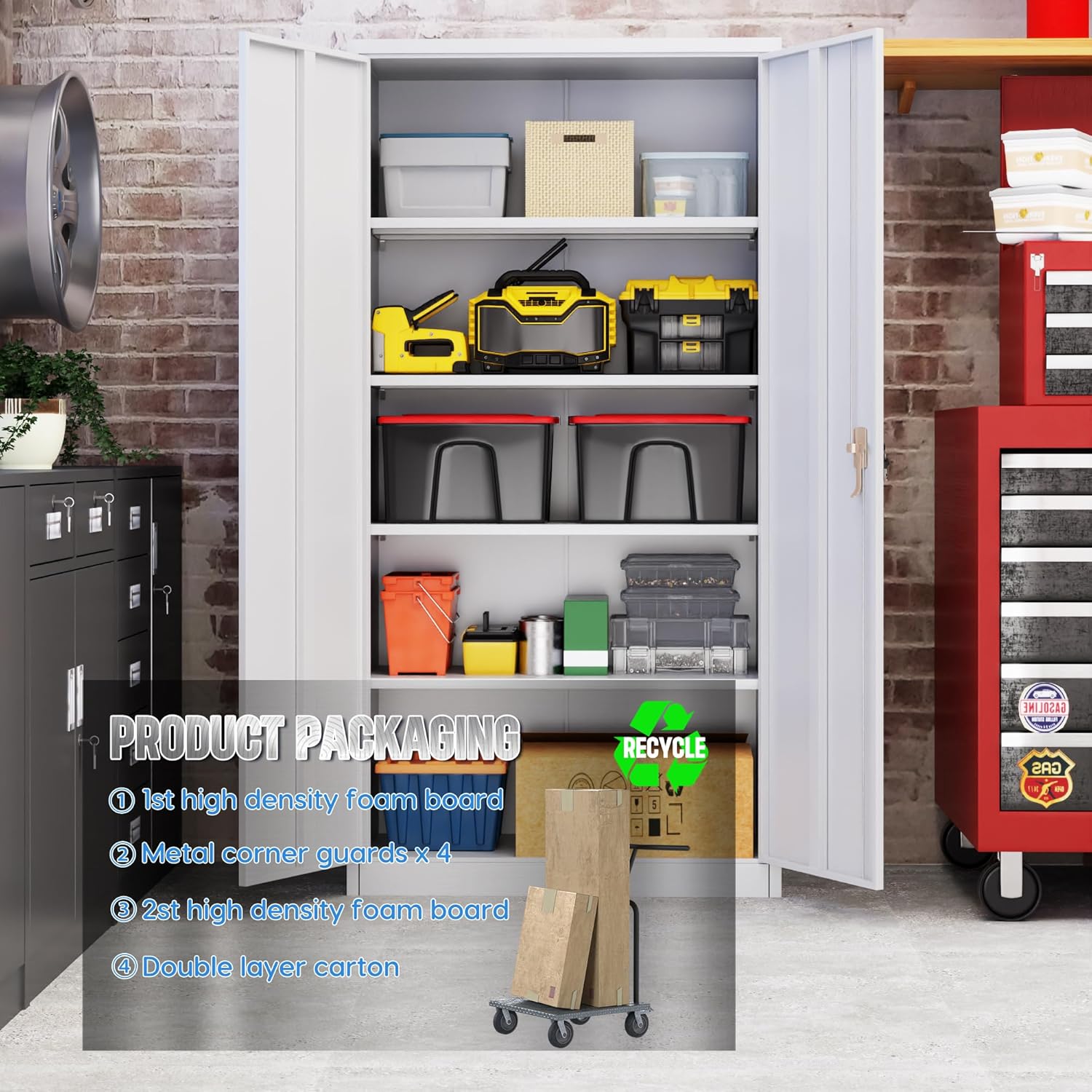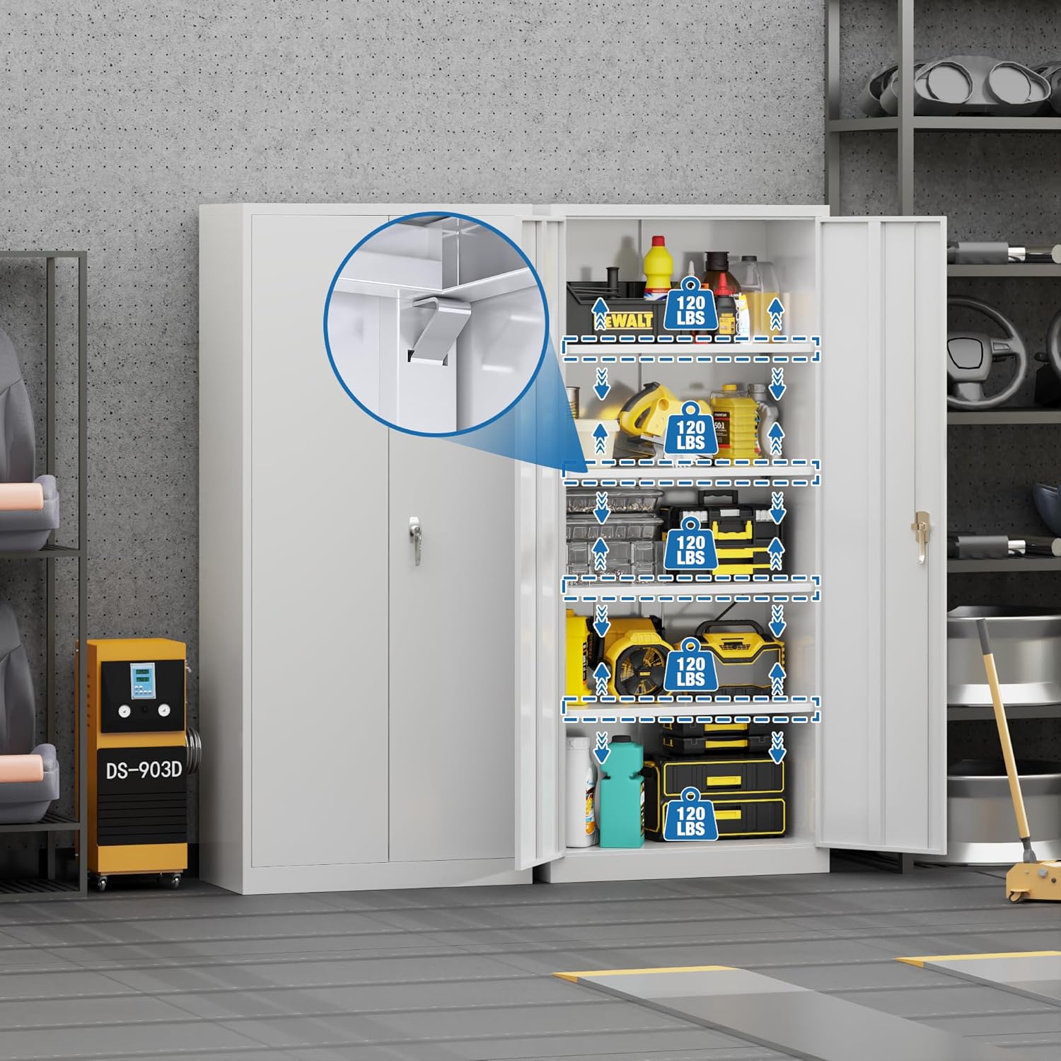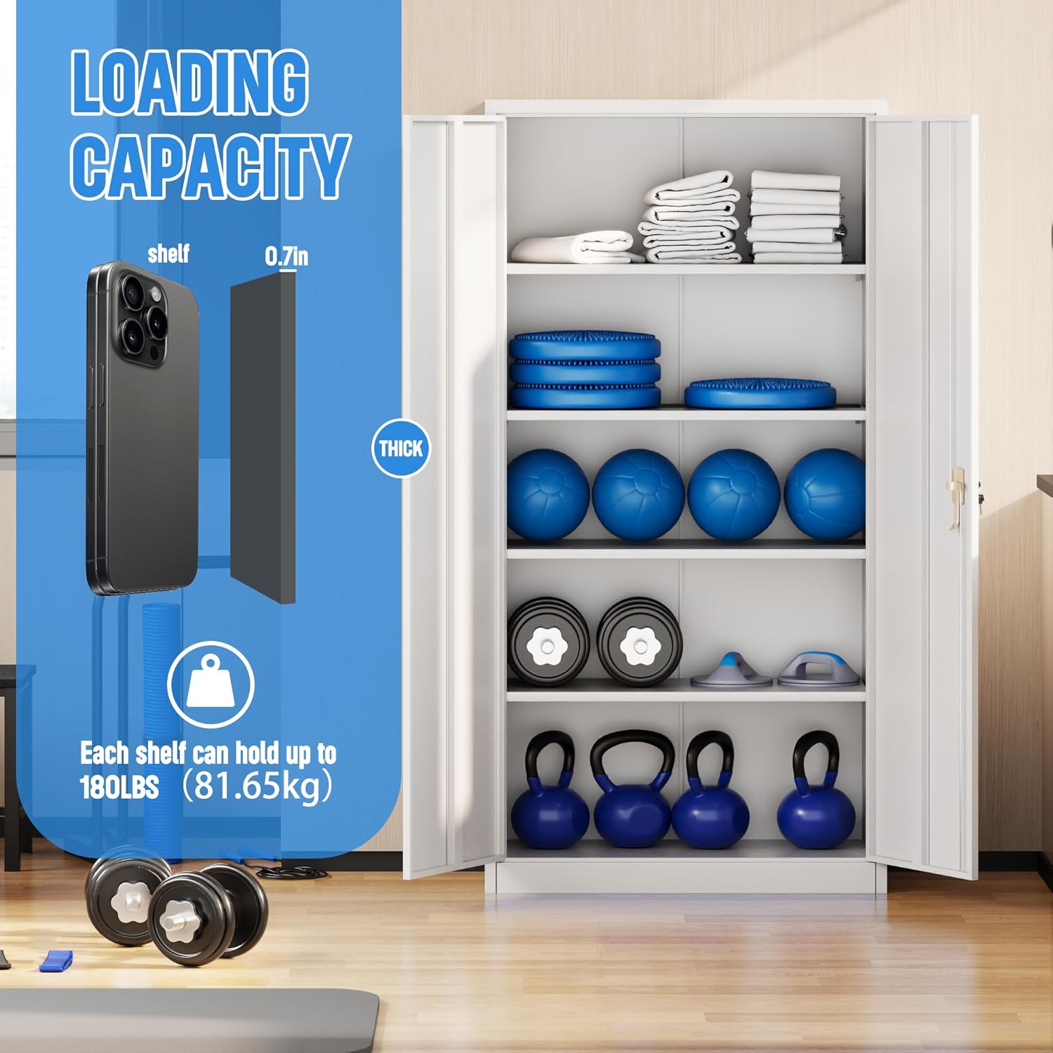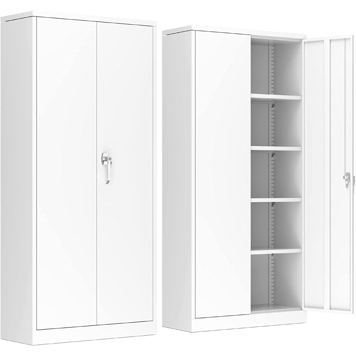 SUPEER Metal Storage Cabinet With 2 Door And 4 Adjustable Shelves,180CM Tall Steel Cabinet For Warehouse,Garage,Home,Office,Easy Assemble Required White