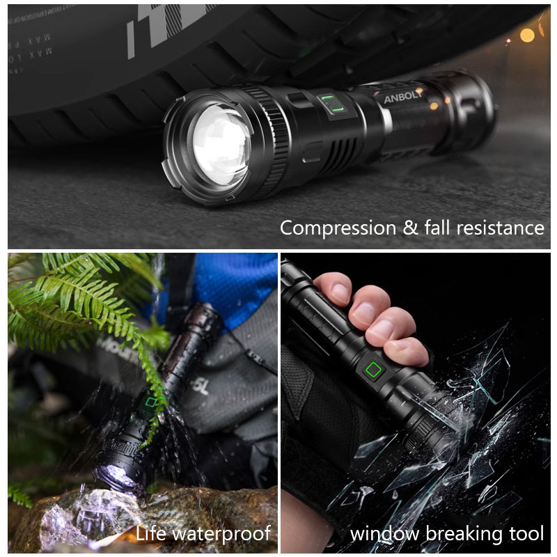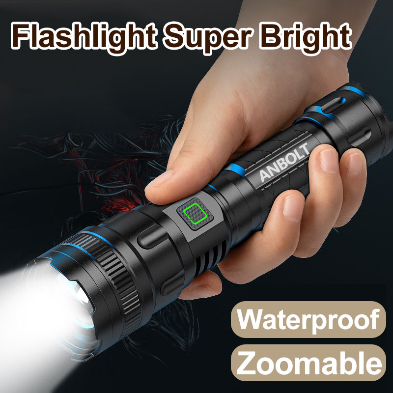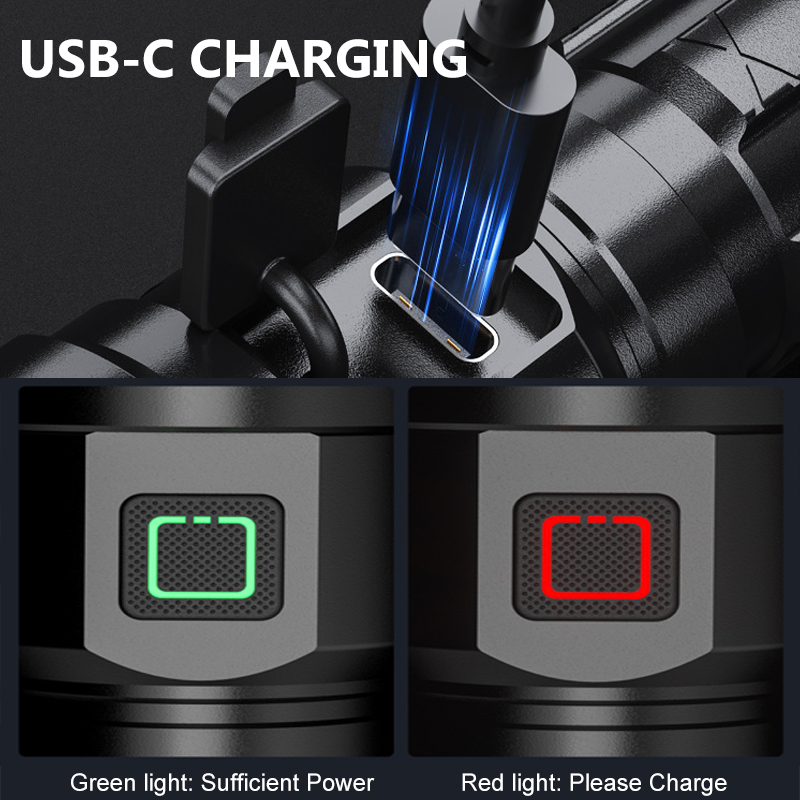 Super Bright Long Range Waterproof LED Flashlight Original USB-C Rechargeable Zoom Flashlight