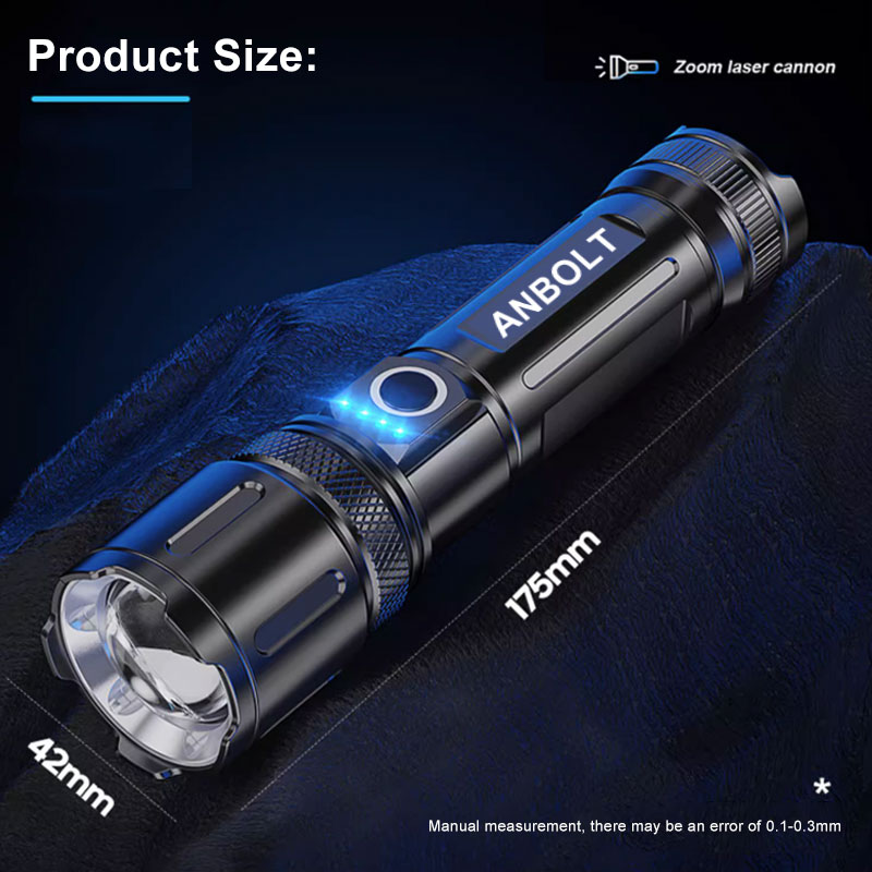 Super Bright Long Range Waterproof LED Flashlight Original USB-C Rechargeable Zoom Flashlight