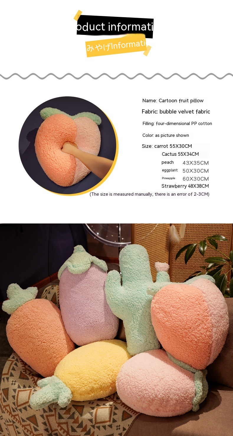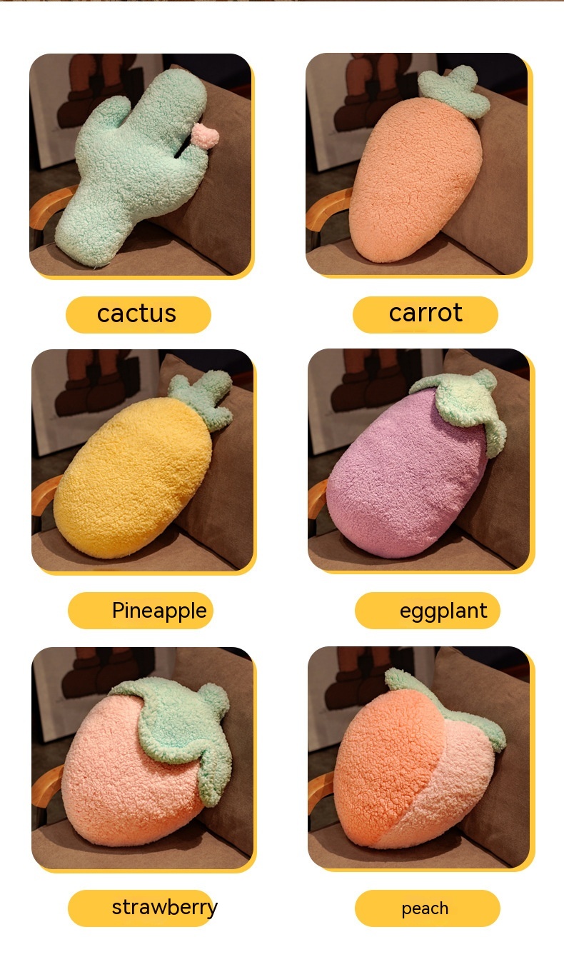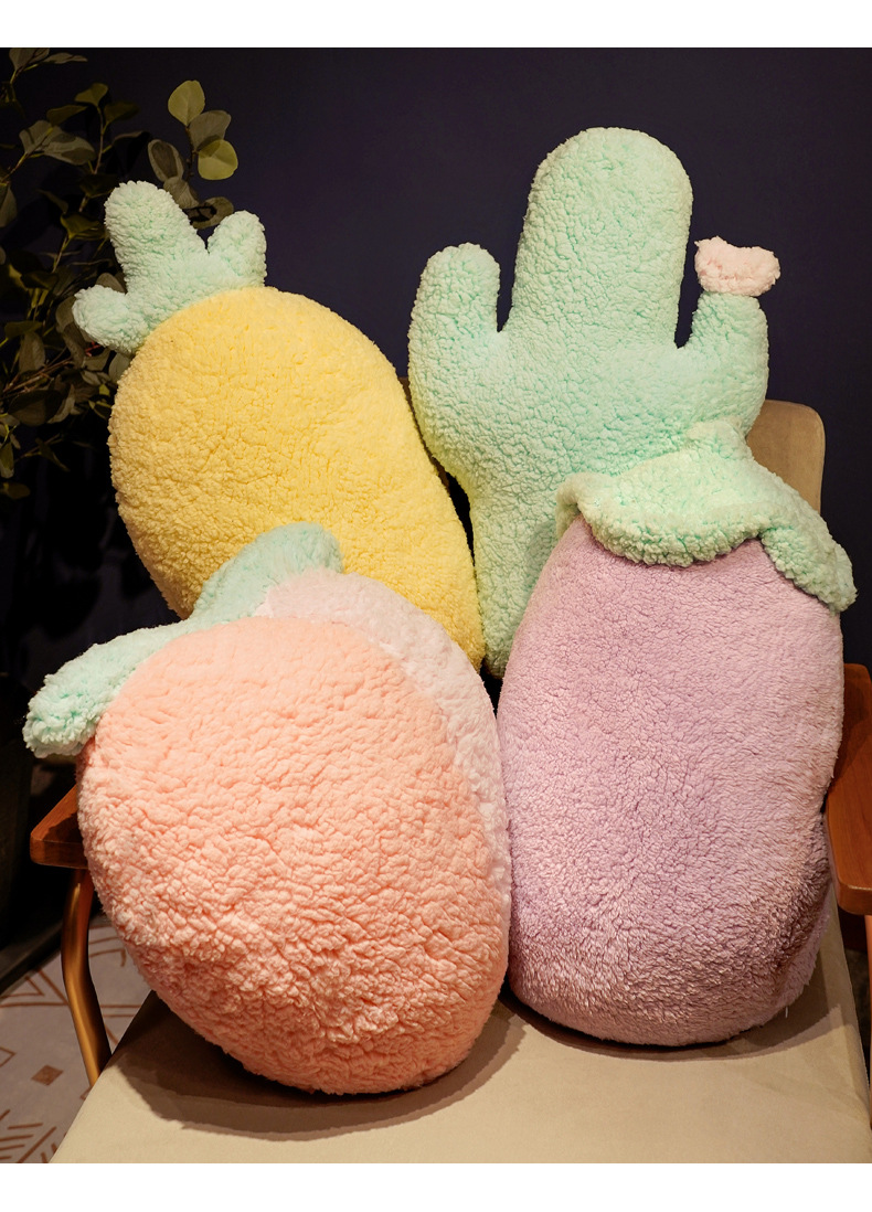 Color: pineapple, strawberry, carrot, eggplant, peach, Cactus