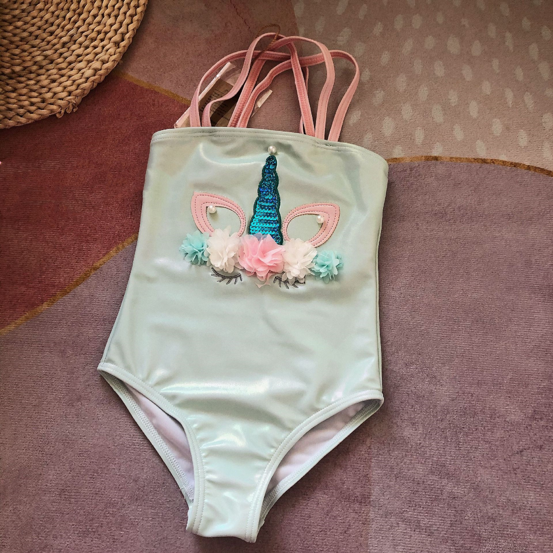 All over print for girls swimsuit, like rainbow, unicorn, dinosaur, mermaid, galaxy sky and so on.
