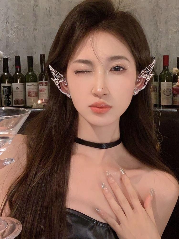 Color: butterfly wings ear hanging ear studs left ear single, butterfly wings ear hanging ear studs right ear single