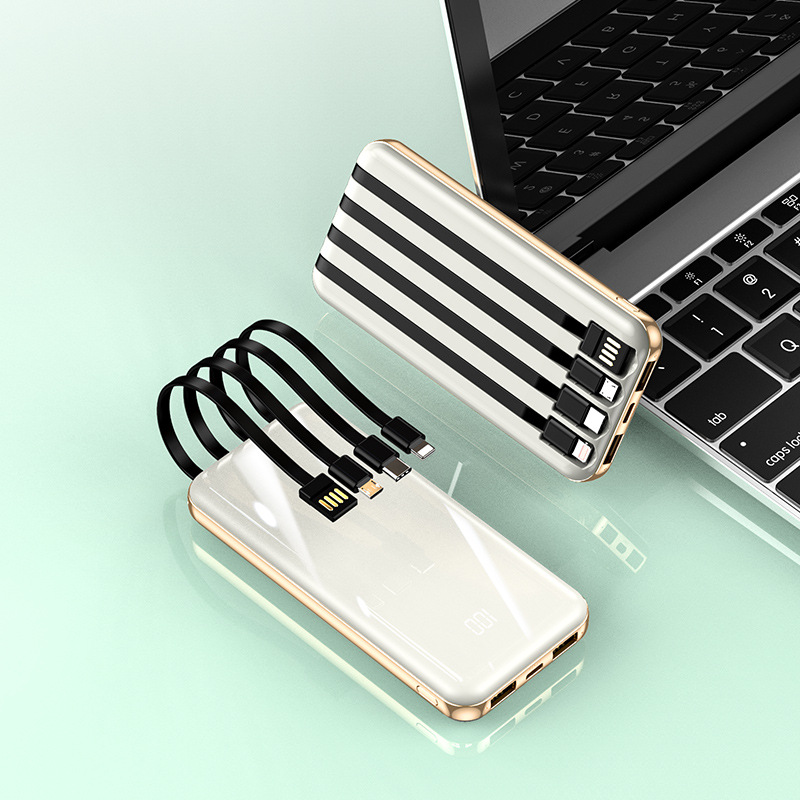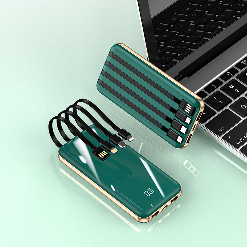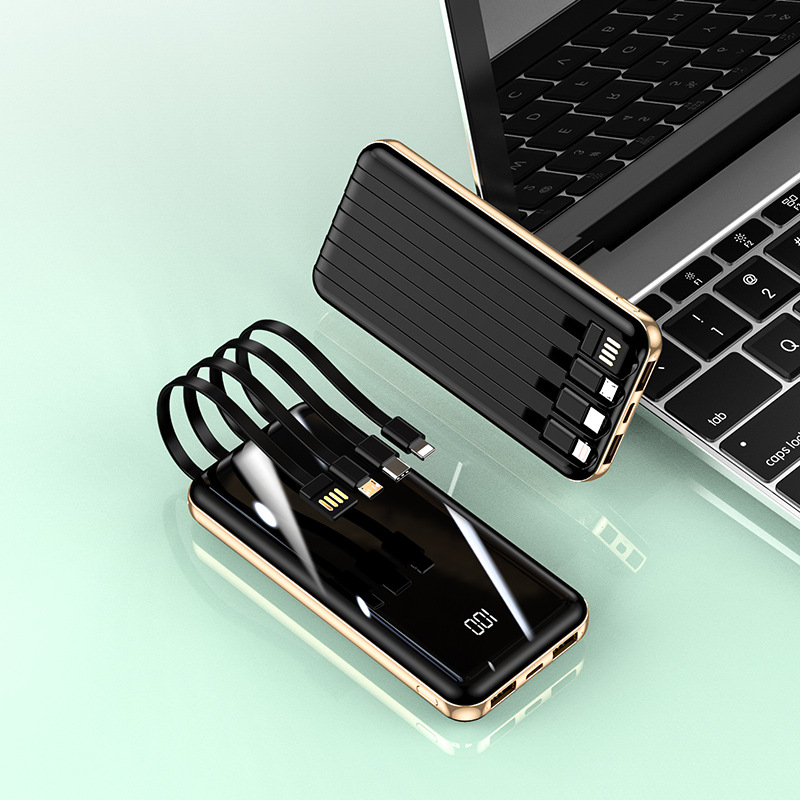 New digital display mobile power bank super fast charging 20000 mAh ultra-thin mini power bank with own cable customized