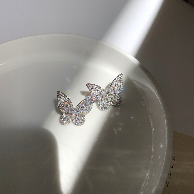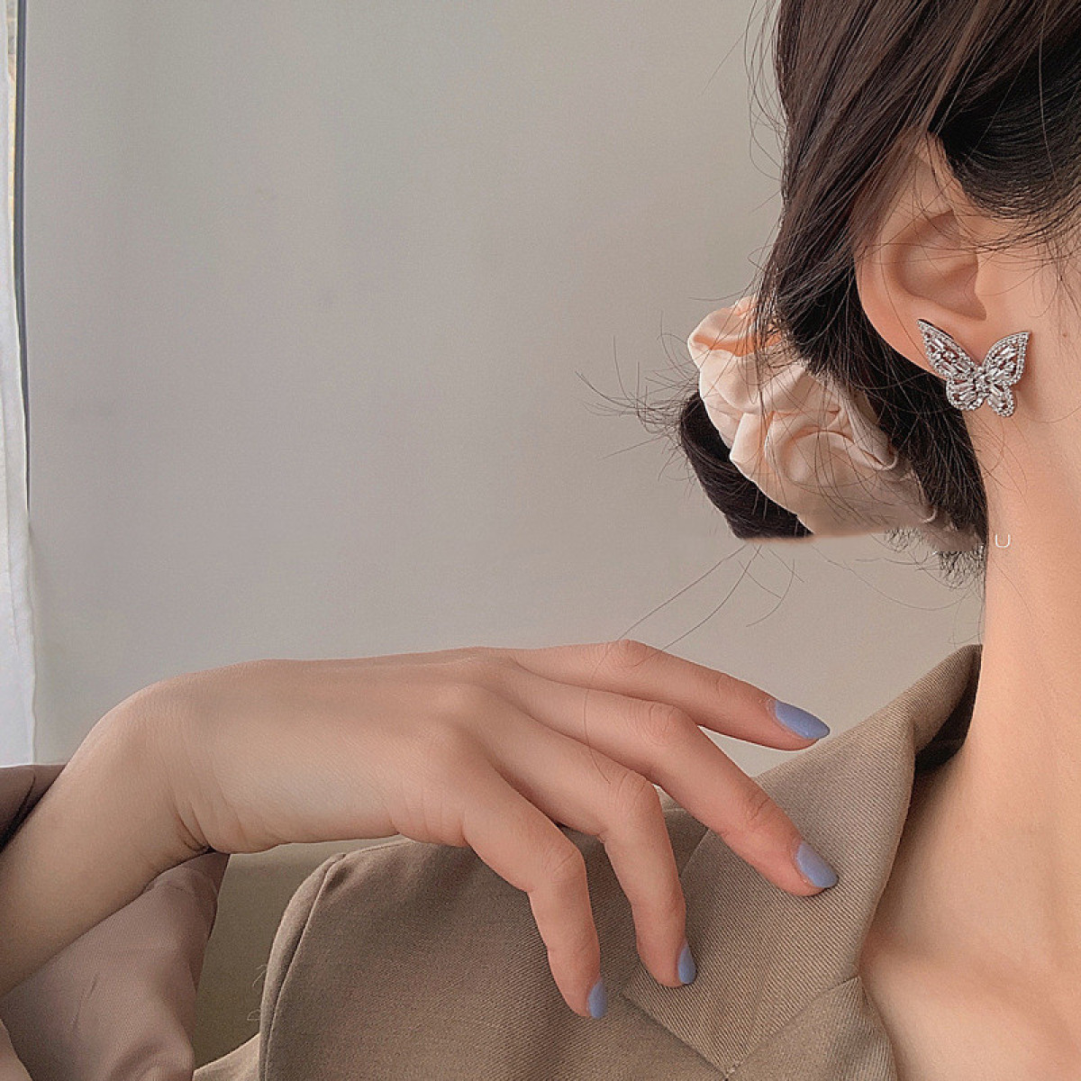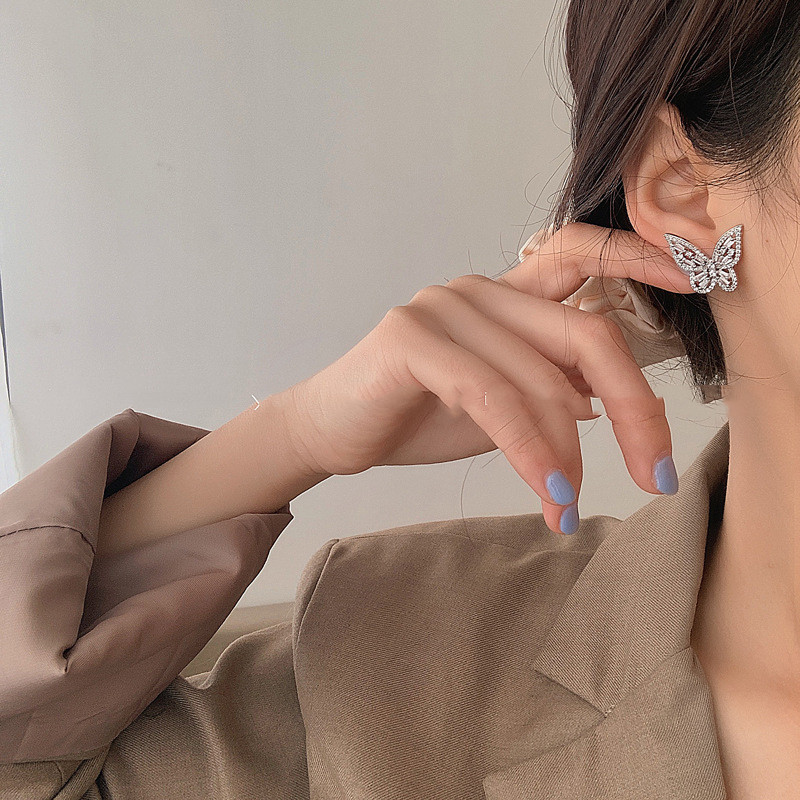 Material: alloy, zircon, s925 silver needleStyle: Japanese and KoreanStyle: Women'sModeling: Butterfly
