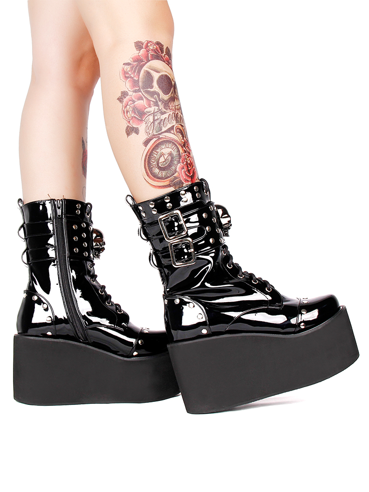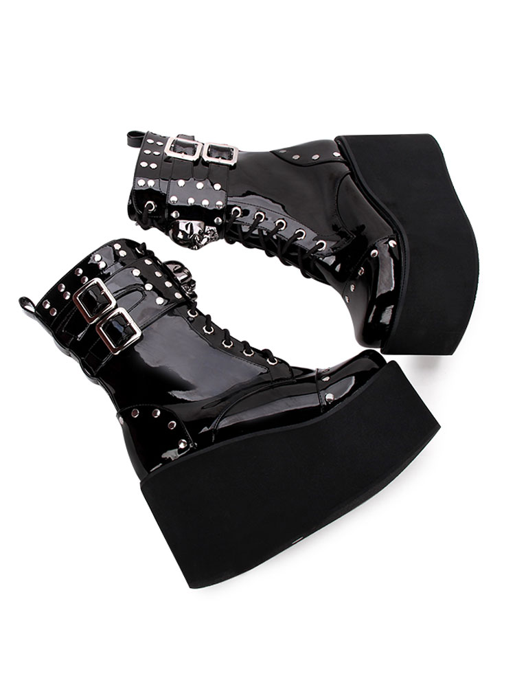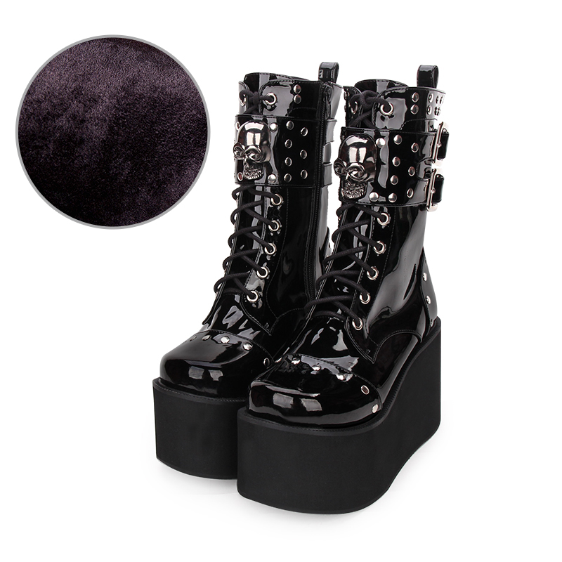 Super high-heel platform punk boots with side zipper and rivet skull decoration