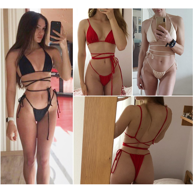 Super Sexy Pleated Sub-system Rope Bikini Split Swimsuit