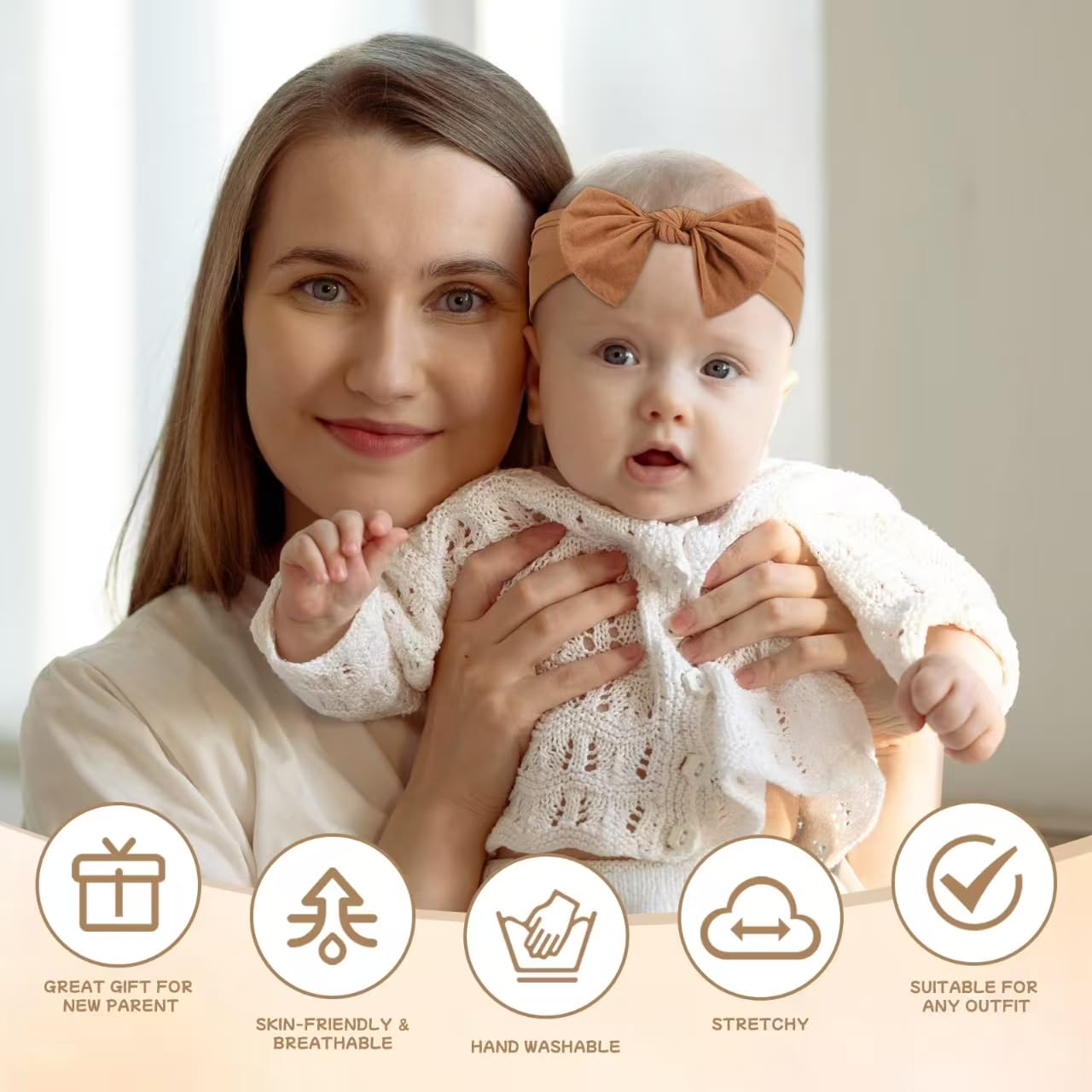 Comfortable to Wear:Softish baby touch,(Feeling like silk stockings).They are light weight,Won't hurt baby's head and leave any mark.It makes your girls lovely and pretty, can go with any kind of clothing