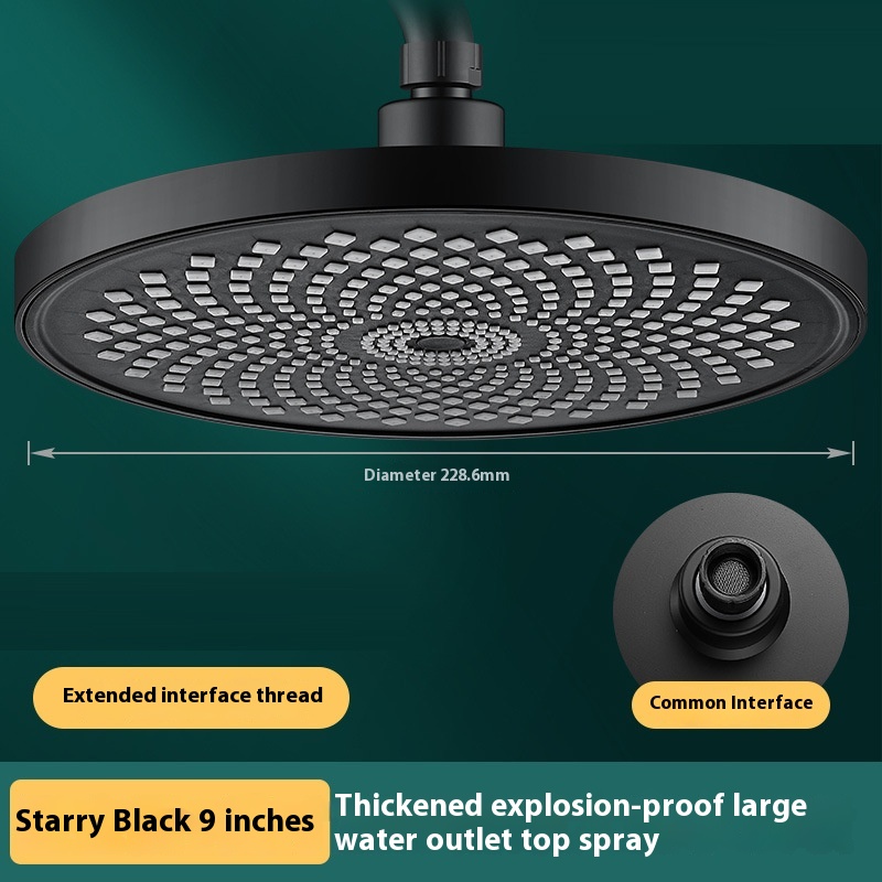 Specifications: 9-inch supercharged# All Black large top-spray, 9-inch supercharged# silver white large top-spray, 10-inch supercharged# All Black large top-spray, 10-inch supercharged# silver white large top-spray, 12cm big panel-black, 12cm big panel-silver, 12cm big panel-gun gray, black 1.5 m encryption tube, silver 1.5 m encryption tube