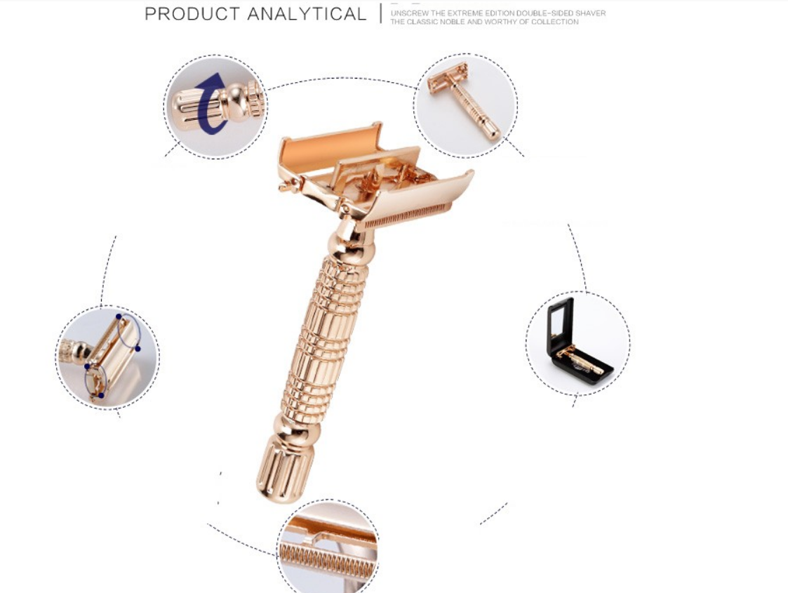 Double Edge Blades Razor Safety Alloy Razor Manual Shaving DE Razors Rose Gold Chrome Plating Shaver With Travel Package
