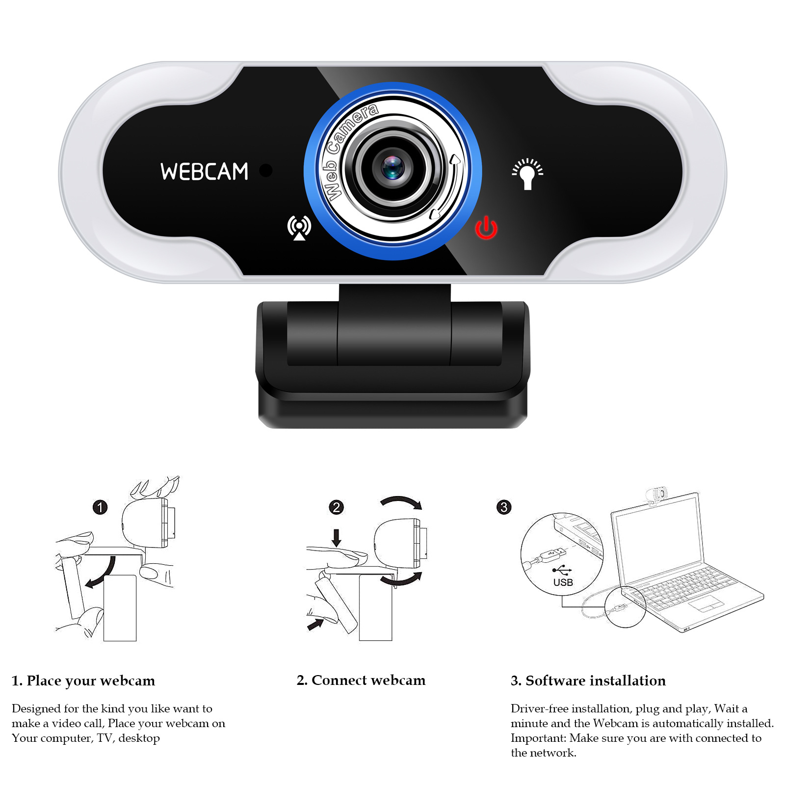 * Working voltage: USB/5V * LED supplement light: 8pcs/white 5500K