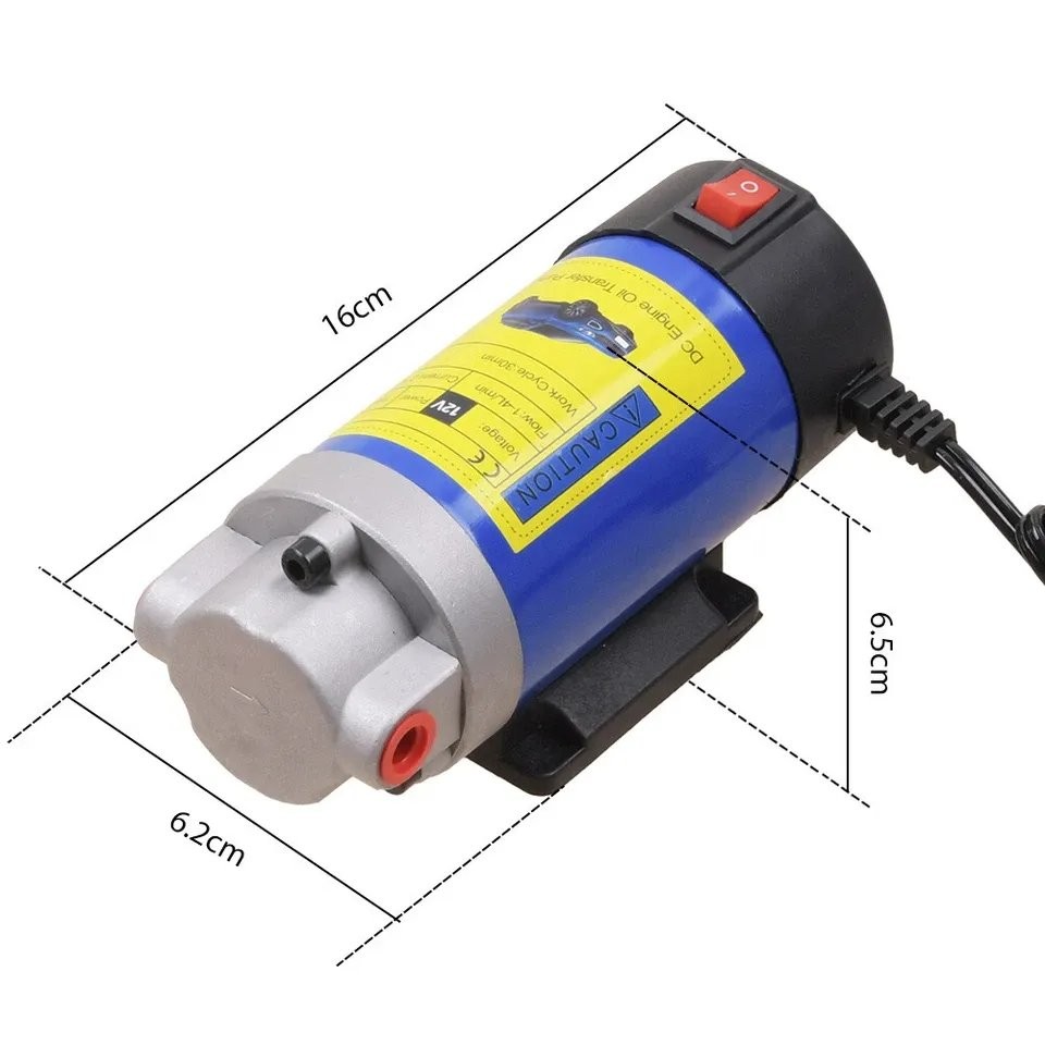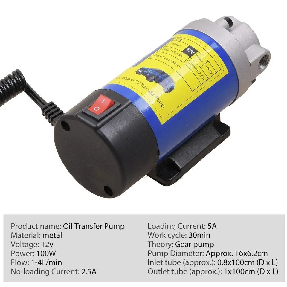 Produktname: 12V 100W Absaugpumpe, Dieselabsaugpumpe, Schmierölpumpe, Getriebeölpumpe, Ölwechselpumpe, 1-4L/min Produktmerkmale: Diese Pumpe ist perfekt für Sie! Setzen Sie einfach den Schlauch in die Flüssigkeit, und die Pumpe erledigt den Rest für Sie – ideal zum Transfer von Kerosin, Schmieröl und Diesel. Sie vermeidet Unordnung und Ärger und spart Ihnen viel Zeit. Die Handhabung von Autoschmieröl ist einfach und schnell – ohne Arbeiten unter dem Fahrzeug erforderlich. Hochwertiges Material: Sicher und einfach zu bedienen. Eine schnelle und saubere Lösung zum Flüssigkeitstransfer. Spezifikationen: Material: Metall Spannung: 12V Leistung: 100W Förderrate: 1-4L/min Leerlaufstrom: 2.5A Laststrom: 5A Betriebsdauer: 30 Minuten Pumpenabmessungen: 16cm x 6.2cm Saugschlauch (ca.): 0.8cm x 100cm FörderSchlauch (ca.): 1cm x 100cm Wichtige Hinweise: Nicht für Wasser, Getriebeöl, brennbare Flüssigkeiten (z. B. Benzin, Kraftstoff usw.) geeignet. Keine Flüssigkeitsabsaugung bei laufendem Motor. Die Betriebsdauer der Pumpe darf 30 Minuten nicht überschreiten. Nicht bei Regen verwenden. Lieferumfang: 1 x Flüssigkeitstransferpumpenset