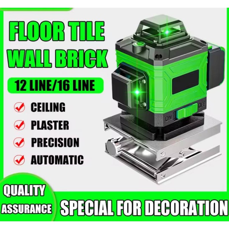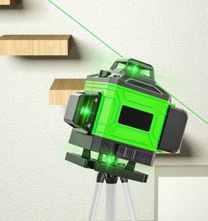 Produktname: 16-Linien-Laser-Wasserwaage-Set Produkteigenschaften: - Hochpräziser Laser: Bietet 12-/16-Linien-Laser, geeignet für verschiedene Dekorationsszenarien wie Bodenfliesen, Wandfliesen, Decken, Gips u.ä. - Multifunktionalität: Mit horizontalen und vertikalen Linien, selbstkalibrierend und hoher Präzision. - Qualitätsgarantie: Speziell für die Dekorationsarbeit entwickelt, stellt die Baupräzision sicher. - Selbstkalibrierung: Selbstkalibrierungszeit < 8 Sekunden, einfache Bedienung. - Betriebstemperatur: -20℃ bis 50℃, geeignet für diverse Umgebungen. - Fernbedienung: Mit Fernbedienung ausgestattet, steuert horizontal und vertikale Linien. - Einfache Bedienung: Bereit zur Nutzung nach Batterieeinbau, ideal für schnelle Bauarbeiten. Produktspezifikationen: - Lasertyp: Klasse II - Laserleistung: <10 mW - Laserwellenlänge: 515 nm (grün) - Laserpräzision: ±1 mm/6 m - Wirkungsbereich: 15 m/±3 m (Innenbereich) - Selbstkalibrierungszeit: 8 s/±1 s - Batterielebensdauer: 3 h±0,5 h - Betriebstemperatur: -15℃ bis 50℃ - Arbeitsumgebung: Empfohlen im Innenbereich - Ladegerätespezifikation: 5V-1~2A - Gewicht: 0,7 kg - Maße: 115 mm × 80 mm × 112 mm - Verpackung: Kunststoffkiste Verpackungsinhalt: - 1 x 16-Linien-Laser-Wasserwaage - 1 x Fernbedienung - 1 x Lithiumbatterie - 1 x Ladegerät (EU-Norm) - 1 x Stoßfeste Tasche - 1 x Universeller Wandhalter - 1 x Universeller Drehteller - 1 x Universelle Hubplattform - 1 x Bedienungsanleitung Anwendungsbereiche: - Verlegung von Bodenfliesen - Montage von Wandfliesen - Dekorationsarbeiten an Decken - Montage von Gipsplatten - Innenraumdekoration