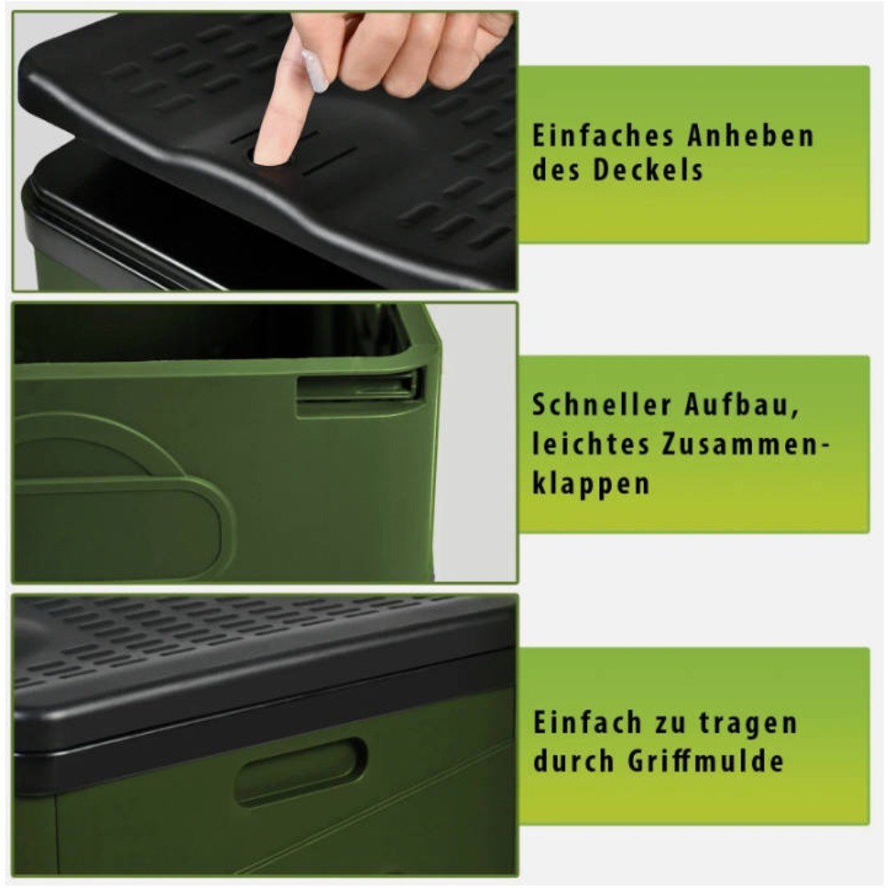 - **Maximale Tragkraft:** 150 kg - **Maße zusammengeklappt:** 27 x 33 x 11,5 cm - **Maße ausgeklappt:** 30,5 x 33 x 27 cm - **Gewicht:** 1,4 kg - **Aufbauzeit:** 60 Sekunden **Anwendungsbereiche:** - Camping - Reisen - Strand - Bootfahren - Wandern - Wohnmobil **Produktbeschreibung:** - **Tragbares Design:** Tragegriffe an beiden Seiten; Deckel zum einfachen Öffnen; Faltmechanismus per Knopfdruck. - **Vielseitig:** Dient nicht nur als Nottoilette, sondern auch als Mülleimer, Hocker, Aufbewahrungsbox usw. und erfüllt somit verschiedene Bedürfnisse bei Outdoor-Aktivitäten. - **Komfort:** Ergonomisches Design für hohen Benutzerkomfort. **Haltbarkeit:** Hergestellt aus robustem und langlebigem PP-Material, belastbar bis 150 kg. **Produktspezifikationen:** - **Material:** PP **Produktmerkmale:** - **Maximale Tragkraft:** 150 kg - **Maße zusammengeklappt:** 27 x 33 x 11,5 cm - **Maße ausgeklappt:** 30,5 x 33 x 27 cm - **Gewicht:** 1,4 kg - **Aufbauzeit:** 60 Sekunden **Anwendungsbereiche:** - Camping - Reisen - Strand - Bootfahren - Wandern - Wohnmobil **Produktbeschreibung:** - **Tragbares Design:** Tragegriffe an beiden Seiten; Deckel zum einfachen Öffnen; Faltmechanismus per Knopfdruck. - **Vielseitig:** Dient nicht nur als Nottoilette, sondern auch als Mülleimer, Hocker, Aufbewahrungsbox usw. und erfüllt somit verschiedene Bedürfnisse bei Outdoor-Aktivitäten. - **Komfort:** Ergonomisches Design für hohen Benutzerkomfort. **Haltbarkeit:** Hergestellt aus robustem und langlebigem PP-Material, belastbar bis 150 kg. **Produktspezifikationen:** - **Material:** PP - **Fassungsvermögen Abwassertank:** 20 Liter - **Flüssigkeitsvermögen Wassertank:** 20 Liter - **Herstellergarantie:** 2 Jahre **Lieferumfang:** - 1 x Tragbare, faltbare Outdoor-Toilette **Produktvorteile:** - Schneller Aufbau und einfache Aufbewahrung. - Multifunktional, geeignet für verschiedene Outdoor-Aktivitäten. - Ergonomisches Design für komfortable Nutzung. - Strapazierfähiges Material mit hoher Belastbarkeit.