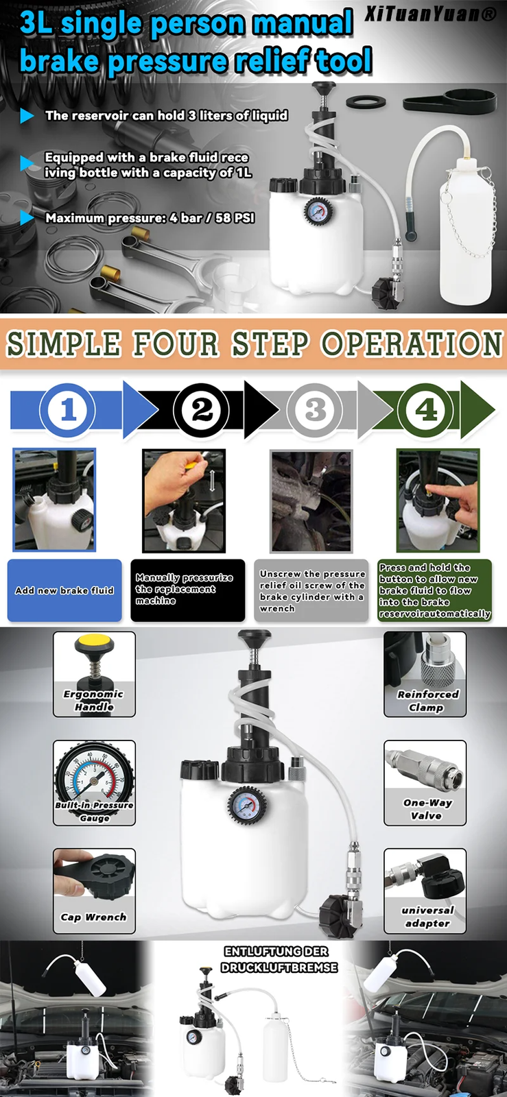 Support Pan European:3L Brake Bleeder Brake Bleeding Device Brake Fluid Capacity