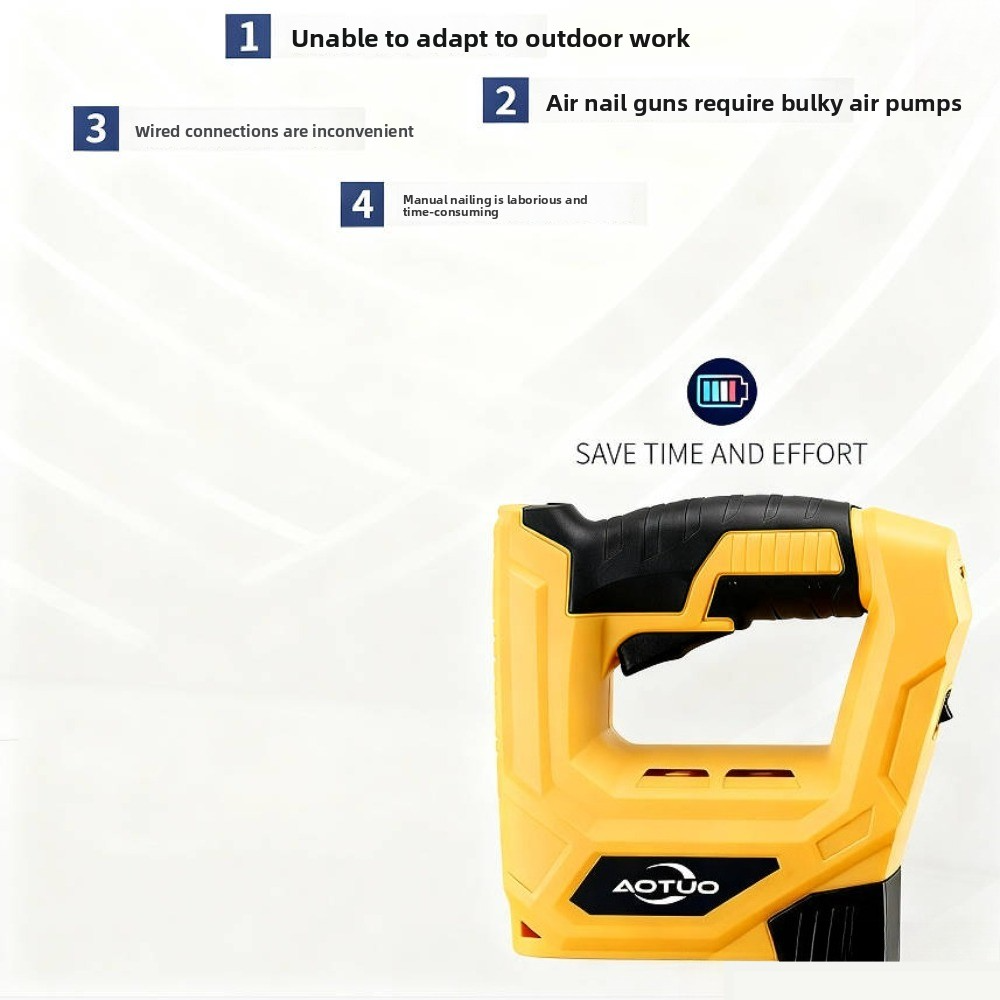 ** Produktname: ** Drahtlose Buchungsmaschine ** Produkteigenschaften ** - Voll Kupfermotor, stark angetrieben - drahtlose Bindung, ein Klick aus dem Nagel - Flüssig und dauerhaft stabil - Leicht und tragbar, sowohl im Inneren als auch im Freien geeignet ** Produkt enthält: ** - drahtloser Buchmacher x1Anleitung x1 - Buchnägel (6mm, 8mm und 15mm) x 1000 StückUSB-Ladekabel x1 ** Technische Daten **Batterie: 3.6V, 1500mAh - Schlaggeschwindigkeit: 60 mal / min - USB-Anschluss: Anschluss über USB-KabelKapazität: 100 Stück - Nägel-Typ: Pfeil T53 Buchnägel, Länge 6-14mm; #47 Nägel, Länge 14-15mm ** Anwendungsszenarien: ** - Schnelle Bindungen für zu Hause, Büros, Baustellen usw. - Geeignet für das Bündeln von Papier, Stoffen, Dünnholz usw. ** Produktvorteile: **1. Kann sich nicht an die Arbeit im Freien anpassen2. Luftspitzengewehr benötigt eine schwere Luftpumpe3. Drahtbindung unbequem4. Manuelles Nageln mühsam