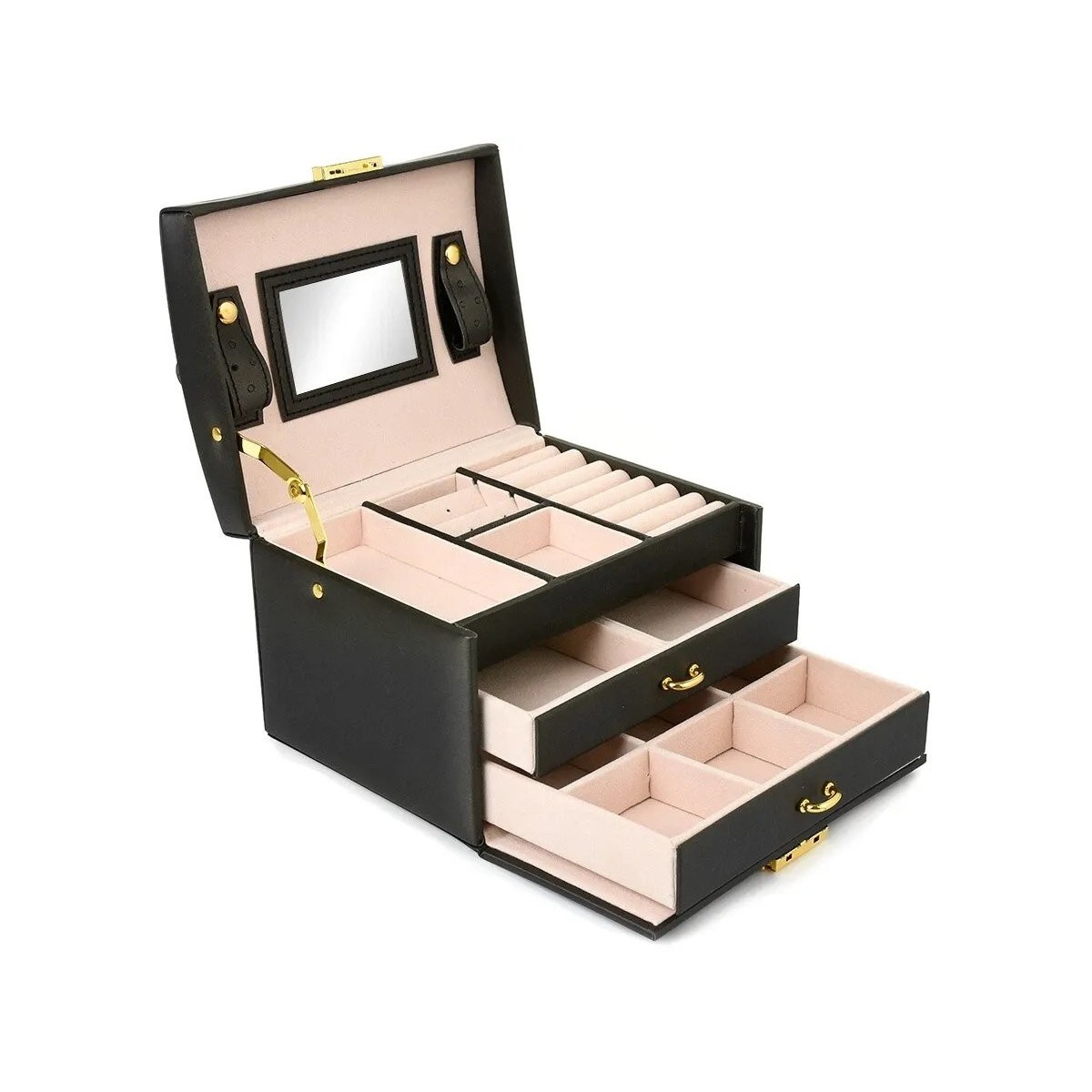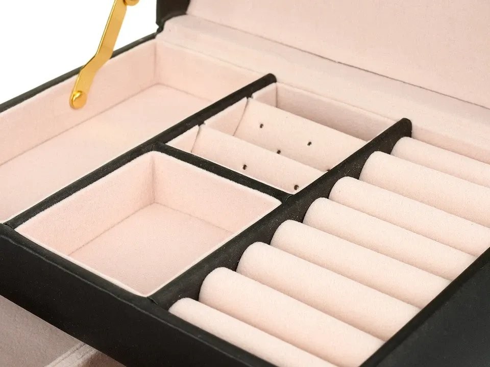 Schmuckaufbewahrungsbox / Schmuckkasten / Schmuckkoffer für Reisen / Aufbewahrungsbox / Schmuckschatulle • Elegantes Aussehen, feine Gestaltung, mehrstöckiges Fächersystem - sorgt für Übersicht und schnellen Zugriff auf all Ihren Schmuck.• Integrierter Spiegel für bequemes Anprobieren von Schmuck. Produktparameter Abmessungen: 17,5 cm (L) × 13,5 cm (B) × 12,5 cm (H) Material: Oberfläche aus umweltfreundlichem PU-Leder, weiches Textilfutter Farbe: Klassisch Schwarz Nettogewicht: ca. 1 kg Aufbau: 3-stöckige, stufenförmige Schmuckbox Zustand: Neu, original eingeschweißt Geschenkgeeignet: Direkt als Geschenk verwendbar, keine weitere Verpackung nötig Lieferumfang 1 × 3-stöckige Schmuckaufbewahrungsbox (mit integriertem Spiegel) Schmuckaufbewahrungsbox / Schmuckkasten / Schmuckkoffer für Reisen / Aufbewahrungsbox / Schmuckschatulle • Elegantes Aussehen, feine Gestaltung, mehrstöckiges Fächersystem – sorgt für Übersicht und schnellen Zugriff auf all Ihren Schmuck.• Integrierter Spiegel für bequemes Anprobieren von Schmuck. Produktparameter - Abmessungen: 17,5 cm (L) × 13,5 cm (B) × 12,5 cm (H) - Material: Oberfläche aus umweltfreundlichem PU-Leder, weiches Textilfutter - Farbe: Klassisch Schwarz - Nettogewicht: ca. 1 kg - Aufbau: 3-stöckige, stufenförmige Schmuckbox - Zustand: Neu, original eingeschweißt - Geschenkgeeignet: Direkt als Geschenk verwendbar, keine weitere Verpackung nötig Lieferumfang 1 × 3-stöckige Schmuckaufbewahrungsbox (mit integriertem Spiegel)
