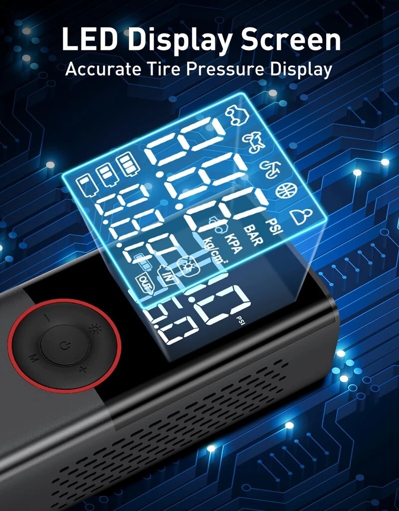 Technische Daten: Produktname: HELLOLEIBOO Luftpumpe Produktgewicht: Nur 403 g (Hauptgerät) Produktgröße: 13 cm × 6 cm × 4,5 cm Akkukapazität: 4000 mAh Leistung: 80 W Spannung: 7,4 V Anwendbar für: Autoreifen, Motorradreifen, Fahrradreifen, Bälle usw. Merkmale: - Lange Akkulaufzeit und starke Leistung: Der eingebaute 4000-mAh-Lithium-Akku mit hoher Kapazität bietet lang anhaltende Leistung für problemloses Aufpumpen mehrerer Reifen, ohne dass Sie sich um Stromausfälle sorgen müssen. - Klein und kompakt, leicht zu transportieren: Das elegante und kompakte Design passt problemlos in das Ablagefach Ihres Autos, spart Platz und ermöglicht Ihnen die bequeme und schnelle Verwendung bei Bedarf. - Schnelles Aufpumpen, zeit- und arbeitssparend: Der leistungsstarke Motor sorgt für schnelles Aufpumpen, wodurch lange Wartezeiten vermieden und Ihre wertvolle Zeit gespart werden. - Präzise Druckregelung, sicher und sorgenfrei: Der Luftdruck kann voreingestellt werden, und das Aufpumpen stoppt automatisch, wenn der eingestellte Druck erreicht ist. So wird das Risiko eines Überdrucks vermieden und Ihre Autoreifen geschützt. - Eine Maschine für mehrere Anwendungen, die verschiedene Anforderungen erfüllt: Geeignet nicht nur für Autoreifen, sondern auch zum Aufpumpen von Fahrrädern, Motorrädern, Bällen und mehr, für Ihre vielfältigen Aufpumpanforderungen. Technische Daten: - Produktname: HELLOLEIBOO Luftpumpe - Produktgewicht: Nur 403 g (Hauptgerät) - Produktgröße: 13 cm × 6 cm × 4,5 cm - Akkukapazität: 4000 mAh - Leistung: 80 W - Spannung: 7,4 V - Anwendbar für: Autoreifen, Motorradreifen, Fahrradreifen, Bälle usw. Hinweise: - Bitte lesen Sie die Produktanleitung vor Gebrauch sorgfältig durch. Bei Fragen zur Anwendung beachten Sie bitte die Produkthinweise. - Da es sich um eine manuelle Messung handelt, kann es zu Abweichungen von 1–2 cm kommen. Vielen Dank!