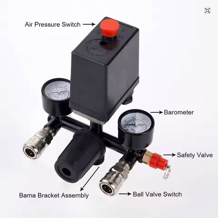 **Produktbeschreibung:** - **Modell:** Bama Halterung - **Nennspannung:** 220/380 V - **Auspuffrohr:** 6 mm - **Kontaktart:** Schließer - **Halterungsanschlussgröße:** 20 mm - **Überdruckventil-Durchmesser:** 9,5 mm - **Maximaler Strom:** 15 A - **Betriebsdruck:** 90-125 PSI (5-8 bar) (0,5-0,8 MPa) - **Lebensdauer:** 80.000 Zyklen - **Das Produkt wird einzeln in einer kleinen Box verpackt.** **Produktbeschreibung:** - **Modell:** Bama Halterung - **Nennspannung:** 220/380 V - **Auspuffrohr:** 6 mm - **Kontaktart:** Schließer - **Halterungsanschlussgröße:** 20 mm - **Überdruckventil-Durchmesser:** 9,5 mm - **Maximaler Strom:** 15 A - **Betriebsdruck:** 90–125 PSI (5–8 bar) (0,5–0,8 MPa) - **Lebensdauer:** 80.000 Zyklen - **Das Produkt wird einzeln in einer kleinen Box verpackt.** **Eigenschaften:** - Langlebig und praktisch. - Ausgestattet mit 2 Schnellkupplungen. - Schwarzer Ein-/Ausschalter. - Automatische Steuerung, automatisches Be- und Entladen. - Einfache Montage und Demontage. - Anschluss an den Gastank mit einem 1/2-Zoll-Gewinde (21 mm), separate Montage erforderlich. Der Kompressorschalter steuert den Druck des Luftkompressors automatisch. Bei einem Druck unter 90 psi schaltet sich der Kompressor ein. Bei einem Druck über 120 psi schaltet er sich ab.