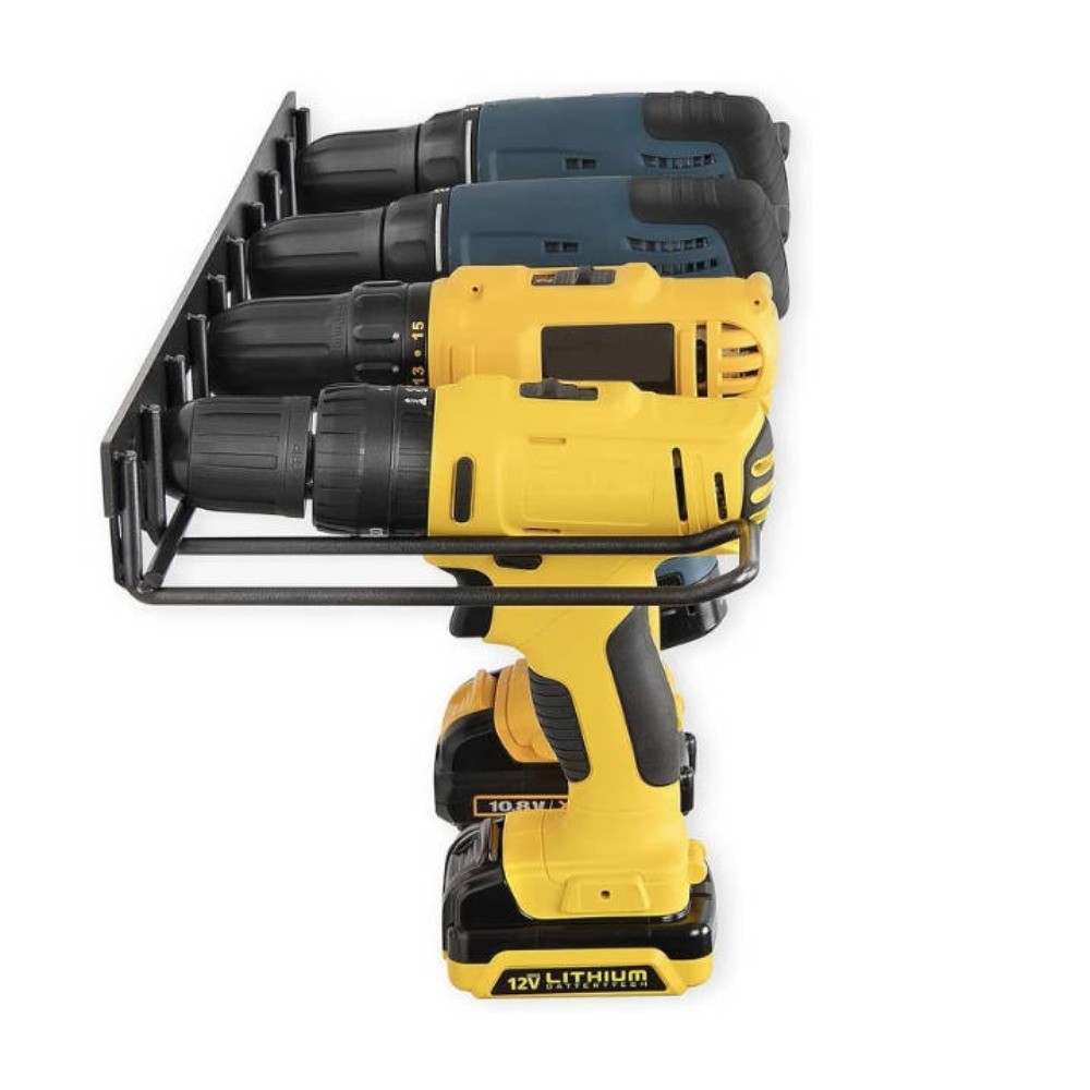 Geeignet für Akku-Bohrmaschinen, Akku-Meisselhammer u.a. Produktinfo - Zustand: Neu, unbenutzt und unbeschädigt - Art: Werkzeughalter - Produkttyp: Aufbewahrungsbox für Elektrowerkzeuge - Material: Eisen - Maße: 43,18 cm x 20 cm x 5,33 cm, Abstand zwischen den Aufnahmen: 4,32 cm - Farbe: Schwarz - Modell: Bohrmaschinenhalter - Merkmale: Robust und langlebig, platzsparend - Stil: Moderner Bohrmaschinenhalter - Hauptmerkmale: Einfach zu montieren - Anwendung: Wandhalter für Elektrowerkzeuge, wandmontierter Ablagehalter - Thema: Werkzeughalter, Werkzeugaufbewahrer - Ausführung: Vierfach-Bohrmaschinenhalter, wandmontierter Werkzeughalter - Geeignet für: Akku-Schrauber, Akku-Bohrmaschinen, Elektrowerkzeuge Anwendungsbereiche - Haushaltswerkzeuge: Ordentliche Aufbewahrung von Elektrowerkzeugen zu Hause, einfach zugänglich - Garage: Geordnete Lagerung von Werkzeugen in der Garage - Werkstatt: Schneller Zugriff auf Werkzeuge in der Werkstatt - Gewerbliche Werkzeugläden: Ausstellung und Lagerung von Werkzeugen im gewerblichen Umfeld Verpackungsinhalt - 2 × Halterungen - 2 × Dübel - 3 × Schrauben Montageanweisungen - Der Bohrmaschinenhalter ist extrem einfach zu montieren und wird mit hochwertigen Dübeln und Schrauben geliefert. - Die Montage kann in wenigen Minuten abgeschlossen werden.