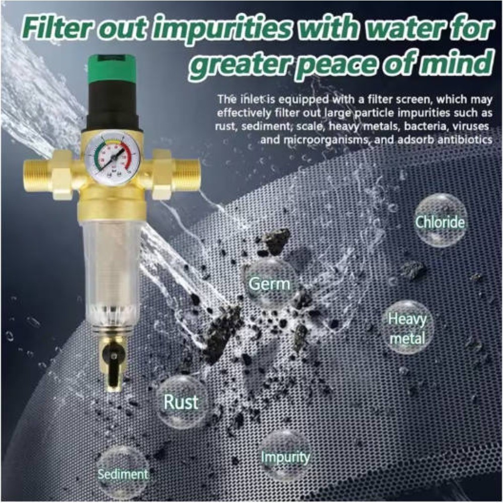 **Produktmerkmale:** - **Geeignete Wassertemperatur:** -10 °C bis 70 °C - **Filtrationsgenauigkeit:** Bis zu 90-120 Mikron für hygienische Wasserreinheit - **Material:** Hergestellt aus robustem Edelstahl, leicht zu reinigen und schützt Ihre Wasseranlage - **Funktion:** Filtert effektiv grobe Verunreinigungen wie Rost, Sedimente, Schwermetalle, Bakterien, Viren und Mikroorganismen aus dem Wasser und adsorbiert Antibiotika für unbesorgten Wassergebrauch - **Schutz des Wassersystems:** Reduziert Druckverluste in Wasseranlagen durch Regulierung von Wasserdruck und Durchfluss und verlängert so deren Lebensdauer **Lieferumfang:** - Filtergehäuse - Manometer - Adapterset (Anschlüsse in verschiedenen Größen) - Schraubenschlüssel - Dichtungen **Produktmerkmale:** - **Geeignete Wassertemperatur:** -10 °C bis 70 °C - **Filtrationsgenauigkeit:** Bis zu 90–120 Mikron für hygienische Wasserreinheit - **Material:** Hergestellt aus robustem Edelstahl, leicht zu reinigen und schützt Ihre Wasseranlage - **Funktion:** Filtert effektiv grobe Verunreinigungen wie Rost, Sedimente, Schwermetalle, Bakterien, Viren und Mikroorganismen aus dem Wasser und adsorbiert Antibiotika für unbesorgten Wassergebrauch - **Schutz des Wassersystems:** Reduziert Druckverluste in Wasseranlagen durch Regulierung von Wasserdruck und Durchfluss und verlängert so deren Lebensdauer - **Hohe Flexibilität:** Der vordere Wassereinlass ist mit Adaptern verschiedener Größen verstellbar und ermöglicht den Anschluss von Rohren mit unterschiedlichen Durchmessern, z. B. Vierkant (13,33 mm), Sechskant (20 mm) und Ein-Zoll (33,33 mm) – praktisch und komfortabel - **Technische Parameter:** Einstellbarer Wasserdruck 0,1–0,8 MPa, hohe Durchflussrate 3–4 Tonnen/Stunde, Filtrationsgenauigkeit 40 Mikron **Anwendungsbereiche:**- Hauswasseranschluss- Industrielle Wasserfiltration- Landwirtschaftliche Bewässerungssysteme **Lieferumfang:**- Filtergehäuse- Manometer- Adapterset (Anschlüsse in verschiedenen Größen)- Schraubenschlüssel- Dichtungen