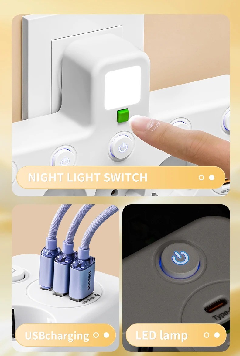 | Specifications: Material: PC fire retardant Current: 10A Voltage: 110-250V~ Power: 2500W Ports: Two specifications available, with or without USB Type-C port USB Output: 5V 2.1A Plug Type: EU Input/Output Plug: EU Plug Charging Protection: Separate Switch Usage Scenarios: Home extension socket, office plug with socket, smart power strip (EU), control switch with night light Specifications: - Material: PC fire retardant - Current: 10A - Voltage: 110-250V~ - Power: 2500W - Ports: Two specifications available, with or without USB Type-C port - USB Output: 5V 2.1A - Plug Type: EU - Input/Output Plug: EU Plug - Charging Protection: Separate Switch - Usage Scenarios: Home extension socket, office plug with socket, smart power strip (EU), control switch with night light Features: - High Conductivity Phosphor Bronze Sheet - High conductivity phosphor bronze sheet with nickel plating, offering an ultra-long lifespan and excellent wear resistance. Plug-in and pull-out can exceed 10,000 cycles. - Fire-Resistant PC Engineering Plastic - Made from high-strength fire-resistant PC engineering plastic, rich in fire-retardant genes. It decomposes quickly when in contact with an open flame, consuming oxygen and providing high fire resistance. It is impact-resistant and drop-proof, complying with the USA UL94V0 fire resistance standard. - Plug Bush Teeth Technology - Compatible with various local and international standard plugs, using full phosphor bronze for the internal plug bush. It offers excellent conductivity and elasticity, passing safety tests by national professional institutions. - Premium Power Cable - Uses a 0.75mm² certified power cable, meeting national standards. It can continuously handle a rated power of 2500W, providing better conductivity and resistance to deformation and damage. - Switch with Indicator Light - The indicator light shows whether the socket is powered. The switch also has an indicator light to display its power status. One end of the switch is white; pressing the white end turns the switch on. - Hanging and Fixing Holes - The hanging hole design allows for easy wall mounting to save space. The fixing holes enable secure attachment to the wall with screws. - Scope of Application - Suitable for various household and office appliances, such as rice cookers, refrigerators, fans, lamps, water dispensers, hot water bottles, soy milk machines, computers, printers, etc., with power ratings up to 2500W. Notes: - The actual color of the item may slightly differ from the picture displayed on the website due to factors such as display brightness and lighting conditions. - This product is manually measured and may have a measurement error of 1-2cm. |