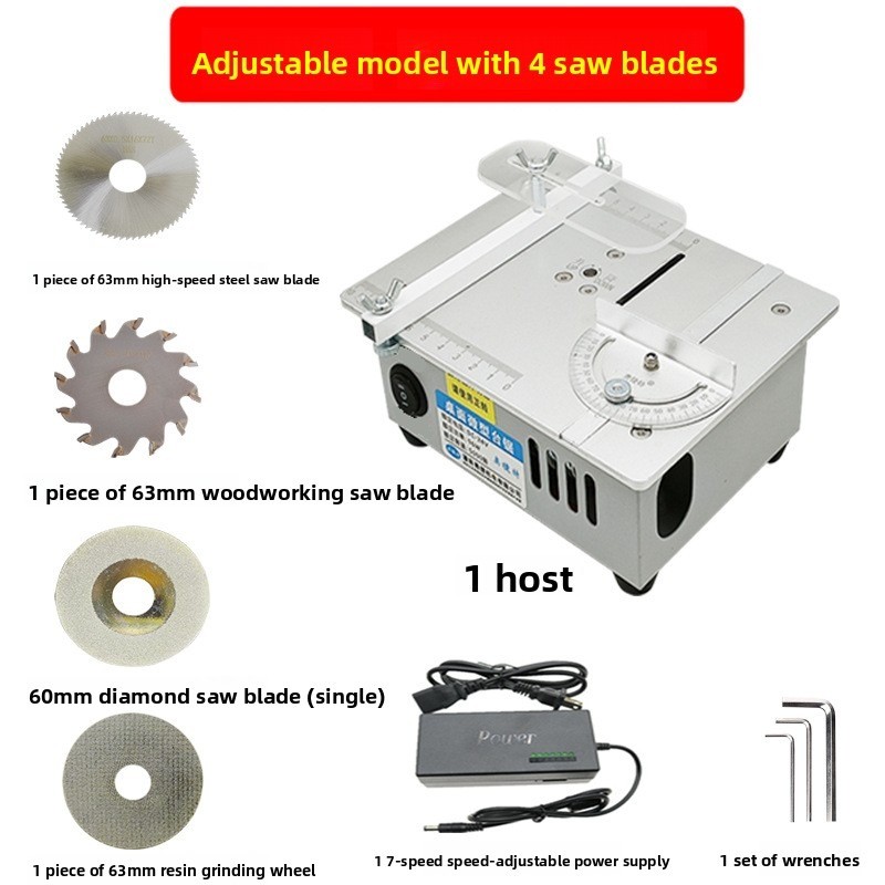 | Wichtiger Hinweis Bei diesem Produkt handelt es sich um eine kleine 2-Zoll-Säge und NICHT um eine große Holzbearbeitungssäge. Bitte überprüfen Sie die technischen Daten sorgfältig, um einen Fehlkauf zu vermeiden! Wichtige technische Daten Sägeblatt-Spezifikationen Größe: Durchmesser 63 mm, Innenbohrung 16 mm (unterstützt ausschließlich diese Spezifikation; Blattstärke ≤ 1,5 mm; größere Sägeblätter sind nicht kompatibel) Höhe über der Tischplatte: 1,5 cm Einstellbereich der Schnitthöhe: 0,1 - 15 mm (im Uhrzeigersinn drehen zum Anheben, gegen den Uhrzeigersinn zum Absenken) Maschinen-Spezifikationen Abmessungen: 18 cm (L) × 14 cm (B) × 8 cm (H) (etwas größer als eine Handfläche) Gewicht: 1,9 kg (inkl. Verpackung) Spannung/Stromstärke: DC 24 V - 4 A Nenndrehzahl: 5000 U/min ProduktnameMini-Multifunktions-Tischkreissäge – Kompaktes Desktop-Schneidgerät für PCB, Modellbau & Holzbearbeitung – Mini-Elektrosäge für Zuhause (Version mit Höhenverstellung – Standard + 4 Sägeblätter-Set)Wichtiger HinweisBei diesem Produkt handelt es sich um eine kleine 2-Zoll-Säge und NICHT um eine große Holzbearbeitungssäge. Bitte überprüfen Sie die technischen Daten sorgfältig, um einen Fehlkauf zu vermeiden!Wichtige technische DatenSägeblatt-Spezifikationen Größe: Durchmesser 63 mm, Innenbohrung 16 mm (unterstützt ausschließlich diese Spezifikation; Blattstärke ≤ 1,5 mm; größere Sägeblätter sind nicht kompatibel)Höhe über der Tischplatte: 1,5 cmEinstellbereich der Schnitthöhe: 0,1 – 15 mm (im Uhrzeigersinn drehen zum Anheben, gegen den Uhrzeigersinn zum Absenken) Maschinen-Spezifikationen Abmessungen: 18 cm (L) × 14 cm (B) × 8 cm (H) (etwas größer als eine Handfläche)Gewicht: 1,9 kg (inkl. Verpackung)Spannung/Stromstärke: DC 24 V – 4 ANenndrehzahl: 5000 U/min ProduktmerkmaleNeues Design: Präzise Konstruktion, kompakt, leicht und langlebigMaterial & Verarbeitung: Ausgewählter Stahl, Technologie nach deutschem Standard, präzise SkalierungFunktionale Vorteile: Integriertes Design von Höhenverstellung, Antrieb und Spindel für höchste PräzisionKernkomponenten: 775er-Vollkupfermotor (für die Antriebsleistung), Zahnriemen (zur Kraftübertragung), Hubspindel (gewährleistet die Präzision der Sägeblatt-Höhenverstellung)BedienungsanleitungHöhenverstellung des Sägeblatts: Einstellung mittels Inbusschlüssel; Einstellbereich 0,1 – 15 mmSchritte zum Sägeblattwechsel:Entfernen Sie die 4 Schrauben auf der TischplatteDrehen Sie die Platte umFühren Sie den Inbusschlüssel in die Positionierungsbohrung ein und lösen Sie die Befestigungsschraube der DruckplatteNehmen Sie die Druckplatte ab, entfernen Sie das alte Sägeblatt und setzen Sie das neue einAnwendungsbereicheDIY-Handwerk / Holzbearbeitungswerkstätten / Hobbyprojekte / Kreative ArbeitenLieferumfangHaupteinheit der Tischkreissäge (Version mit Höhenverstellung) + 4 Sägeblätter |