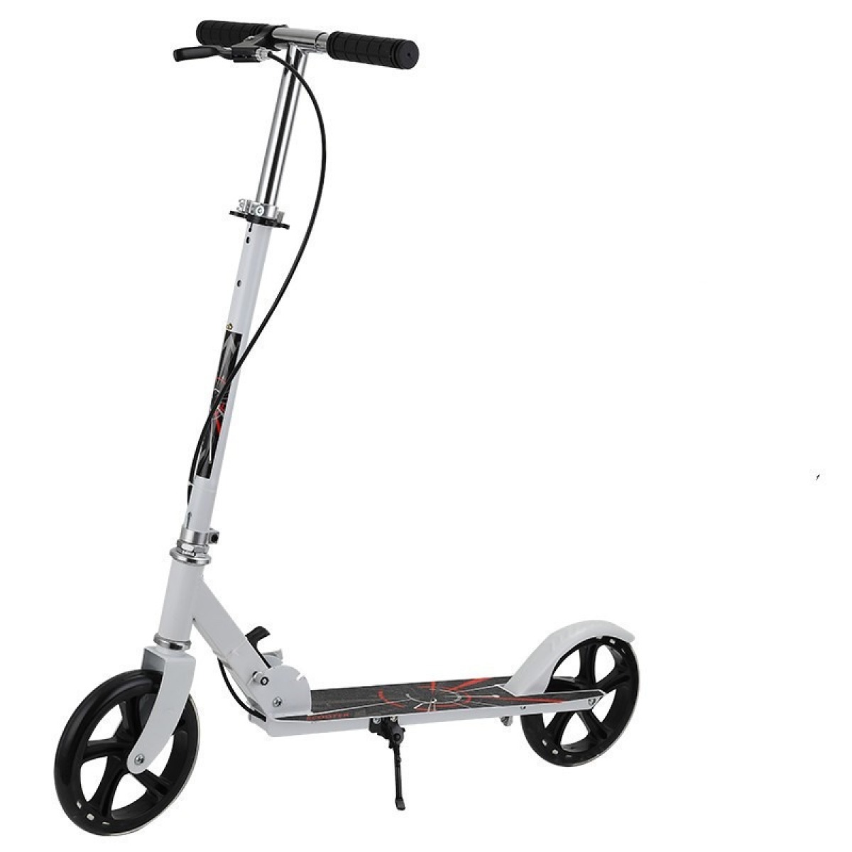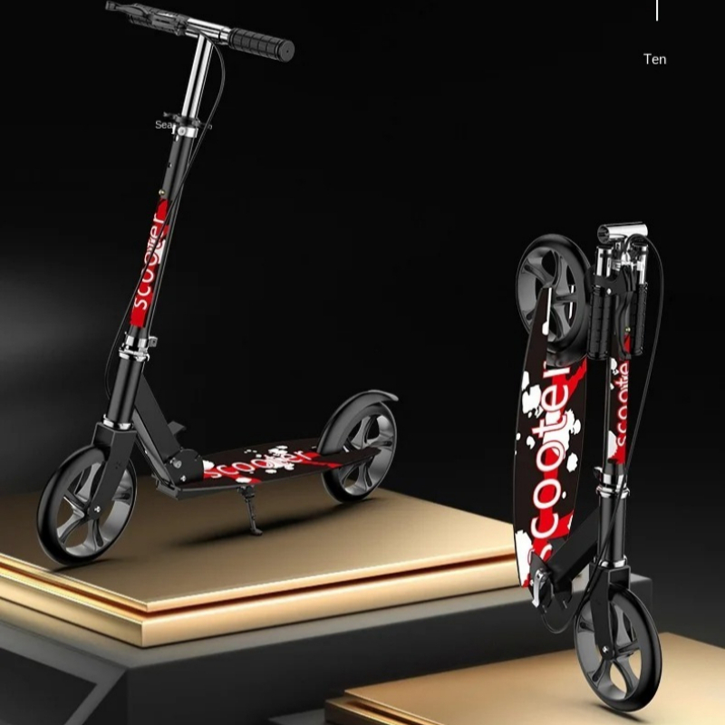 Specifications - Model Number: RRXH0887 - Type: Two - wheel Skateboard - Wheel Device: PLANAR - Applicable People: Youngsters - Wheel Number: 2 - Origin: Mainland China - Body Material: Iron - Wheel Material: PU - Age: >6 YearsProduct Parameters - Product Name: 200 Plus broadband handbrake adult scooter - Product Size: 261484MM - Pedal Width: 160MM - Product Weight: 5.52 KGS - Body: full iron - Weight: 150KG - Wheels: high elastic PU wheels - Bearing: ABEC - 7 bearing steel bearing - Surface Treatment: frosted pattern wear - resistant anti - corrosion spray technology