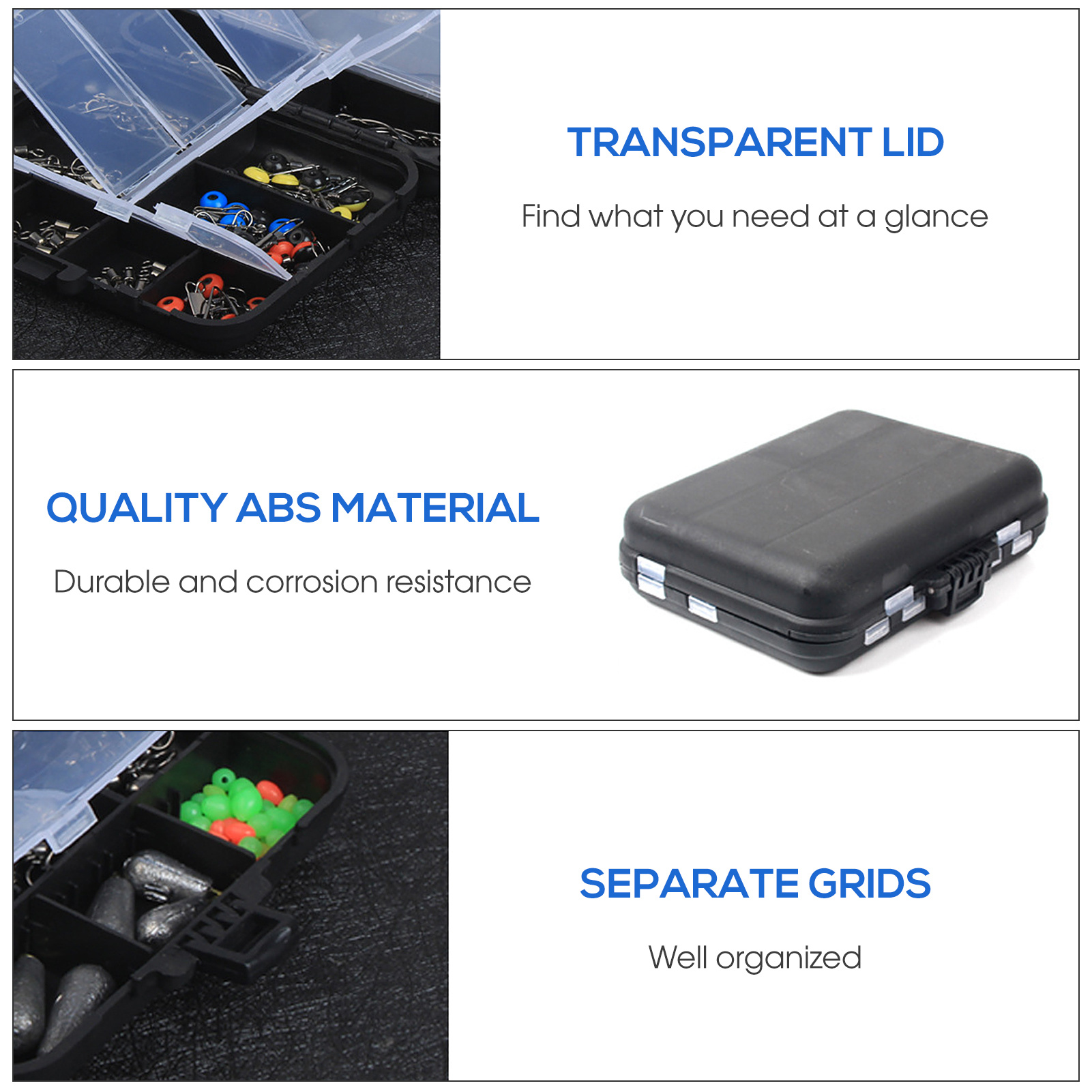 263pcs Outdoor Fishing Accessories Set with Tackle Box Including Plier Jig Hooks Sinker Weight Swivels Snaps Sinker Slides Kit - Product Name: 263-Piece Fishing Tackle Set with Multi-Function Pliers and Fishing BoxProduct Description: Comes with a fishing box and a multi-function pliers. The box includes 263 fishing accessories, such as fishing hooks, sinker weights, floats, plastic sheets, snaps, snap swivels, bobber stops, sinker slides, crimp sleeves, etc. Features: - 263-Piece Fishing Tackle Set: Contains a variety of fishing accessories needed for different fishing occasions. - Multi-Function Pliers: Can be used to remove hooks, cut wires, take out steel rings, grip fish firmly, etc. - Solid and Durable ABS Box: Strong corrosion resistance, compact size for easy carrying. - Separate Grids: Keep everything well organized, and the transparent lid helps you quickly identify what you need. Specifications: - Material: ABS + Stainless Steel - Float Color: Red & White / Orange (Optional) - Package Size: 12cm × 9.5cm × 3cm / 4.7in × 3.7in × 1.2in - Package Weight: 340g / 12.0ozPackage List: - 1 × Multi-Function Pliers - 263 × Fishing Accessories - 1 × Fishing Box