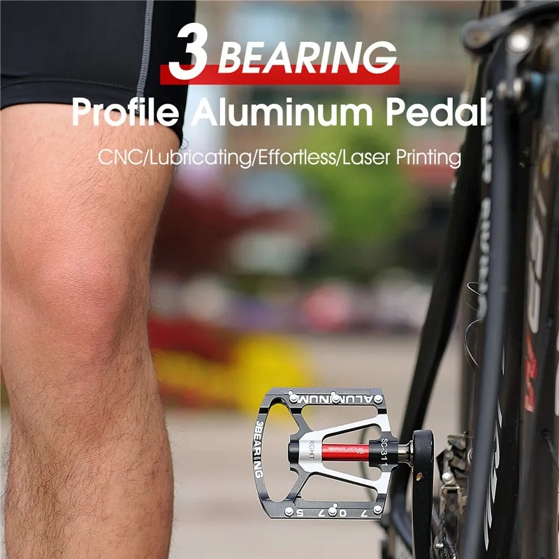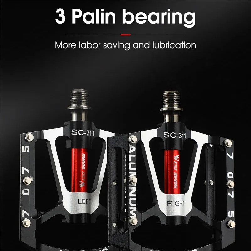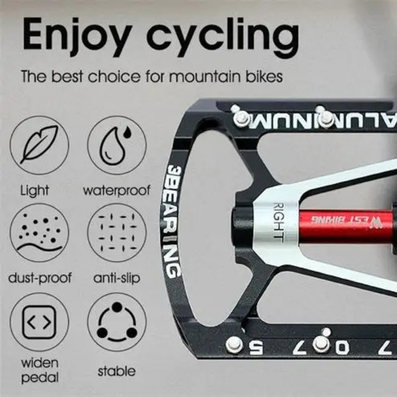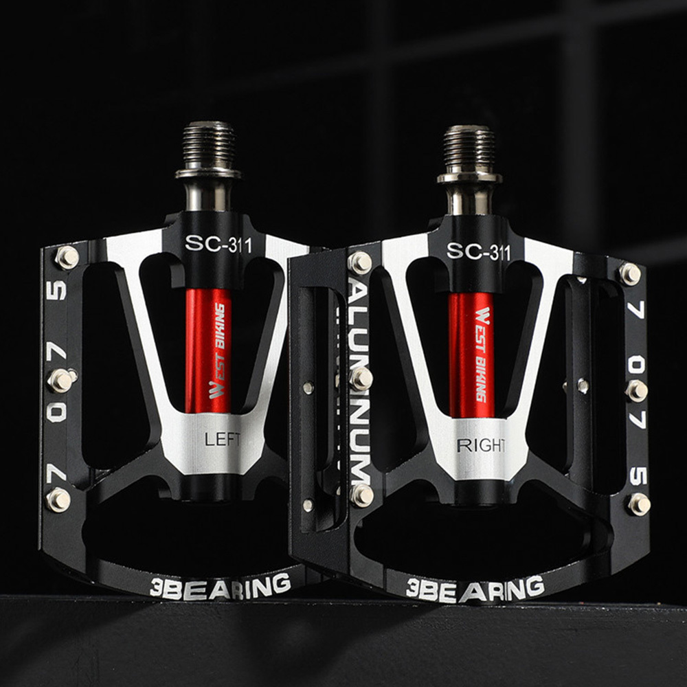 3 Peilin Aluminum Alloy Foot PedalFeatures - Wider platform and lighter weightThe oversized platform bicycle pedal provides a more stable pedal experience and fixes your foot in place. Lightweight pedals save you energy during cycling. - Durable and stable-The pedal body is made of aluminum alloy, making the mountain bike pedal more stable, durable, high strength, and corrosion-resistant. - Anti-slip and excellent gripEach side has anti-slip nails to increase friction, ensuring safe riding on rainy days and rough roads. Even after a muddy ride, the nylon pedal is covered with a thick layer of mud, so don't worry about your feet slipping off the pedal! Sealed bearingThe sealed DU bearing protects the main shaft from the influence of water and dust, keeping the pedal rotating smoothly and noiselessly, even if they are covered with a thick layer of mud after muddy riding. Enjoy cycling in the rain or climbing mountains. Multi-purposeSuitable for most bicycles, including mountain bikes, racing bicycles, folding bikes, etc.Parameters Name:3 Peilin Aluminum Alloy Foot Pedal Body material:Aluminum alloy Bearings:3 sealed bearings Thread diameter:14mm Size:100mm × 17mm × 100mm Pedal category:Pedal Use:BMX, cruiser, mountain bike, racing bicycle Color:Black, red, silverPackage includes Bicycle pedal × 2 (1 pair)