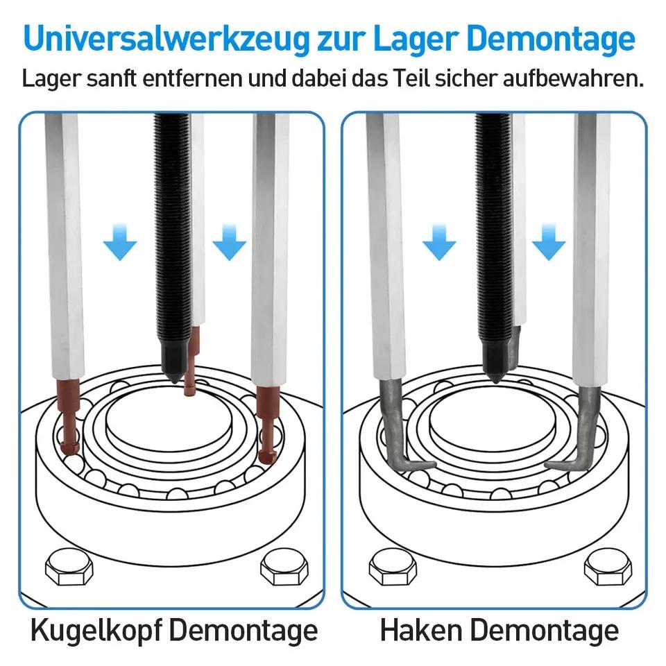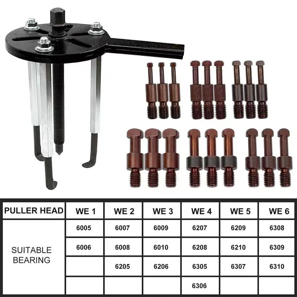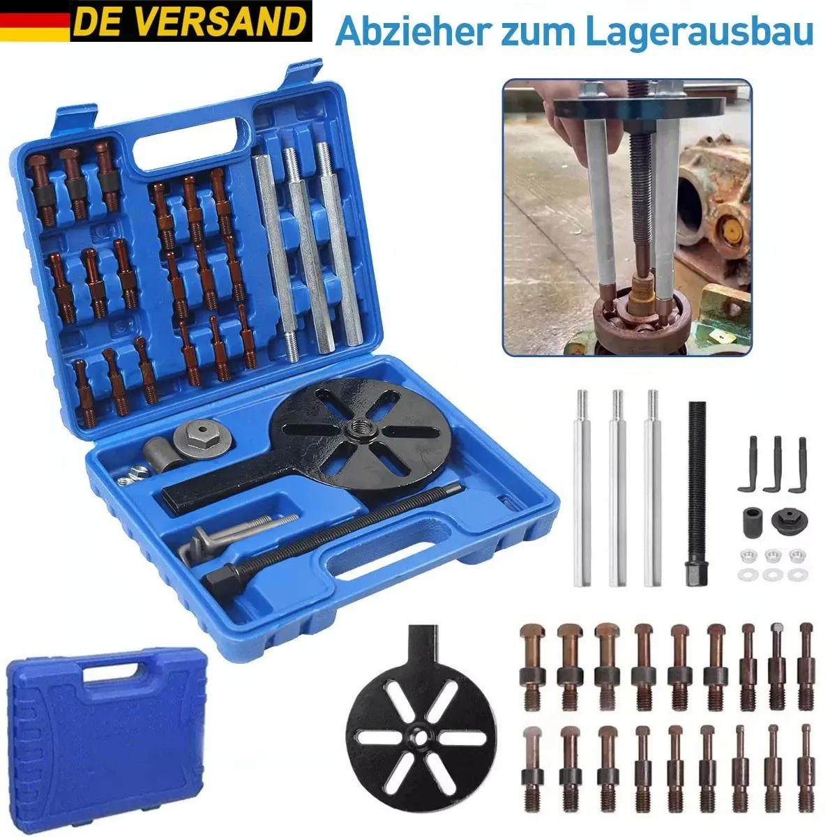 34x Innenlager Abzieher Set (with Bag Hole, Base Hole, Internal Puller, Special Tool) Features: Material: Made from hardened carbon steel, highly durable and long-lasting. Design: The pullers and rods have rounded edges instead of sharp ones to protect your hands from scratches. Performance: The thickened and reinforced parts with high torque are hard and break-resistant, allowing for high pulling forces to remove a variety of stuck bearings. Operation: Manual pulling is simple and can be done step-by-step, making it easy for beginners to get started. Application: The set includes six pullers of different sizes to meet the daily disassembly needs of bearings of various shapes and sizes. Storage: The storage box with practical grooves allows for organized storage of all accessories, preventing them from getting lost. The recessed handle on the top makes it easy to carry. Advantage: This puller set with seals provides a professional, non-destructive, and easy method for disassembling bearings and will help you with the process. Compatibility: Suitable for Kubota, Wade, and Yangma, and ideal for bearing disassembly in harvesters, vehicle maintenance, mechanical bearings, agricultural machinery, etc. Specifications: Material: Carbon steel Color: As shown in the pictureSurface Treatment: Quenching processPuller Head Models: WE1/WE2/WE3/WE4/WE5/WE6Applicable Bearings: WE1: 6005/6006WE2: 6007/6008/6205WE3: 6009/6010/6206WE4: 6207/6208/6305/6306WE5: 6209/6210/6307WE6: 6308/6309/6310Storage Box Size: Approximately 270 x 210 x 60 mmNet Weight: 3035 gPackage Contents: 34-piece bearing puller set1 storage box Notes: The dimensions are manually measured and may vary by 1-10 mm.Slight color variations due to lighting and screen differences are possible.