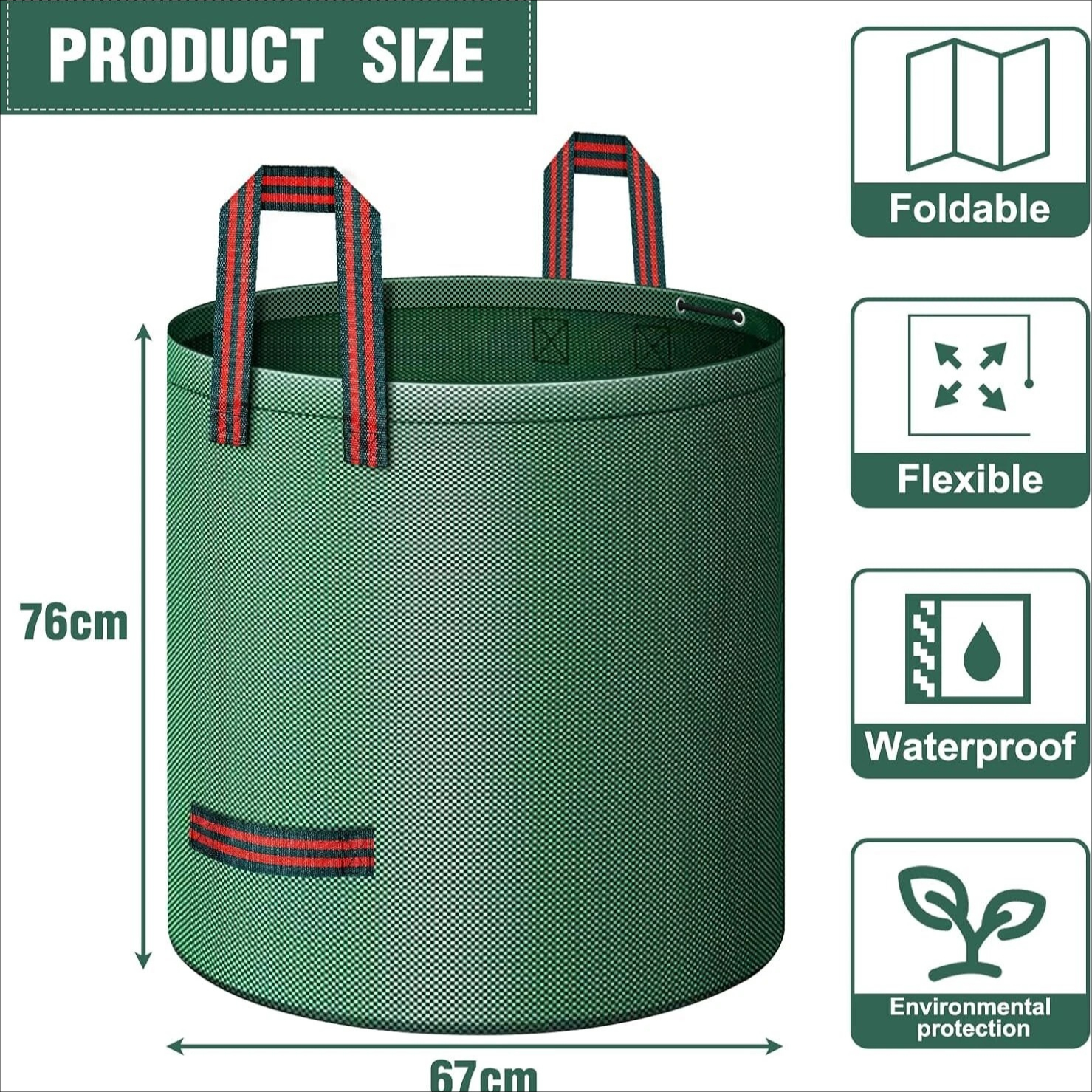Product Name4-Pack XXL Garden Waste Bags 272 LKey Features - Extra-large capacity: 272 L per bag—perfect for leaves, grass clippings, and general garden waste. - Heavy-duty fabric: 150 g/m² woven polypropylene (PP) for tear resistance and long life. - Reinforced rim: sturdy ring keeps the bag open for effortless filling. - Easy to carry: four robust handles sewn all around for secure lifting by one or two people. - Water-repellent reusable season after season.Specifications - Material: Polypropylene (PP) 150 g/m² - Volume per bag: 272 L - Quantity: 4 bags - Handles: 4 per bag - Features: water-resistant, machine/hand washable, foldable for storagePackage Contents - 4 × 272 L garden waste bags