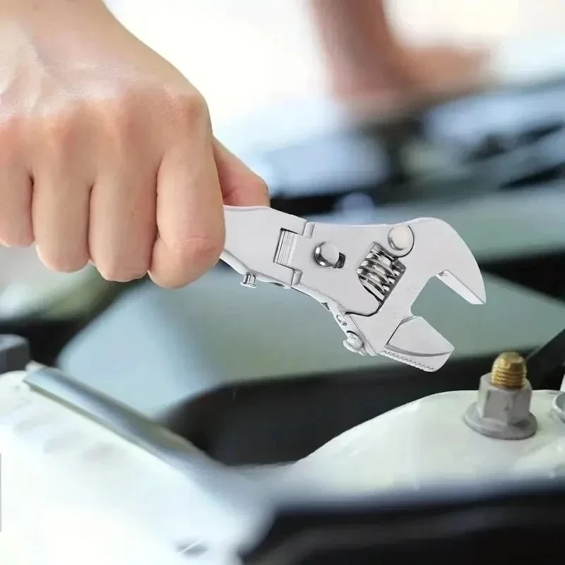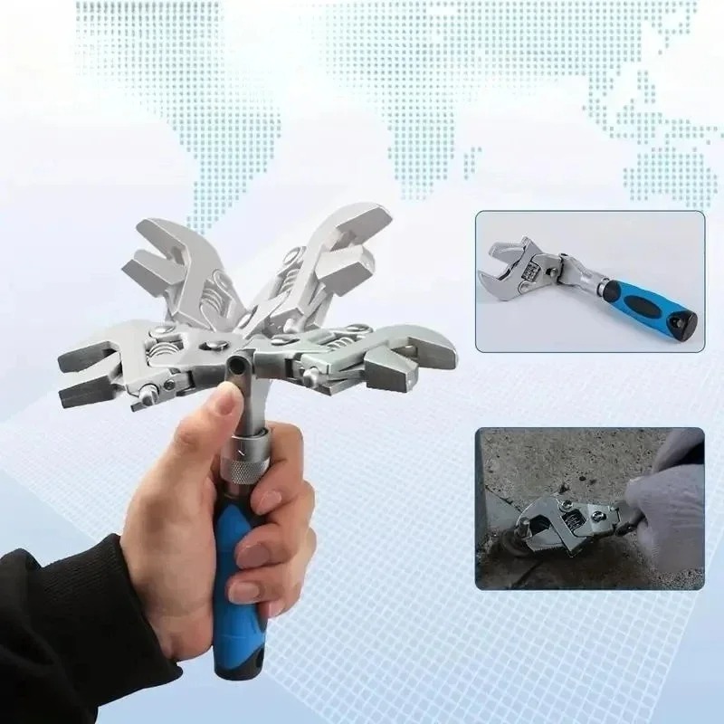 Ratcheting Wrench Universal Maintenance 180 Degree Folding 10-Inch Pulley 5 In 1 Adjustable Torque With Rotating Head Hand Tools Features: Operation Mode: Pull BackProduct Length: 255mmOpening, Maximum: 45mm Material: 450 steel, Handle PP+TPR Color: BlueSpecial Features: Foldable, non-slip handleSurface Treatment: MatteRecommended Use: OutdoorAssembly Required: None Packing: 1pcProduct Highlights: Wide Range of Uses: 5-in-1 wrench can replace a variety of tools. Adjustable: 180° folding and swivel head for easy access to tight spaces.10 Inches Long: For increased leverage and reach.Rocker Head Ratchet: For effective tightening and loosening.Easy to Store and Carry.