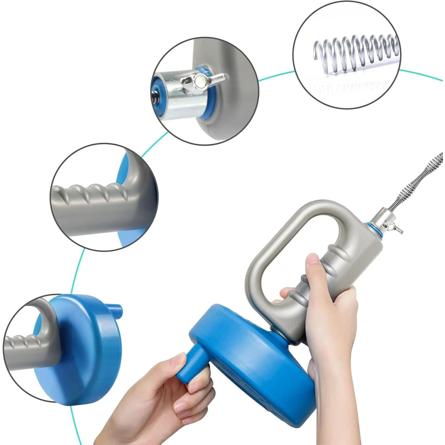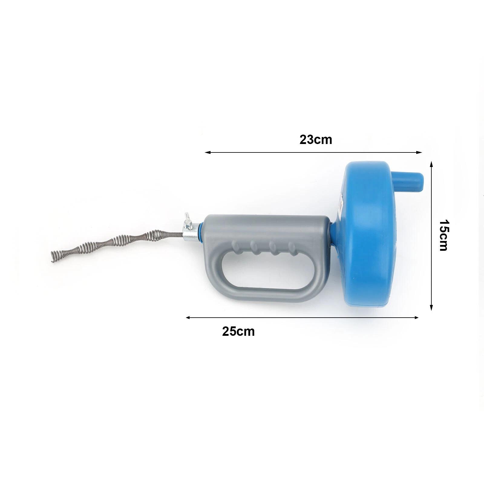 Product Description: Manual Operation: Offers better device control. Pull out the pipe cleaning spiral from the device and insert it into the pipe until it reaches the blockage. Tighten the wing screw and turn the knob to clear the blockage by applying gentle pressure with the rotating spiral. Applications: Suitable for cleaning sinks, bathtubs, showers, and other drains and pipes. Clog Removal: Equipped with a spiral hammer drill bit, it effectively clears common pipe blockages caused by hair, paper, wet wipes, food residues, grease, etc. Specifications: Color: Blue + Grey Size: 15×15×25 cm Spiral Wire Material: Carbon Steel Handle Material: Plastic Steel Wire Length: 7 m Model: Spiral Drain Cleaner Special Features: Waterproof Application Sites: Toilet, Shower, Bathtub, Sink, Basin Quantity: 1 pc Product Type: Pipe Spiral, Drain Spiral, Cleaning Spiral Material: PE Plastic + 72A Carbon Steel Type: Spiral Drain CleanerPackage Contents: 1×Pipe Cleaner