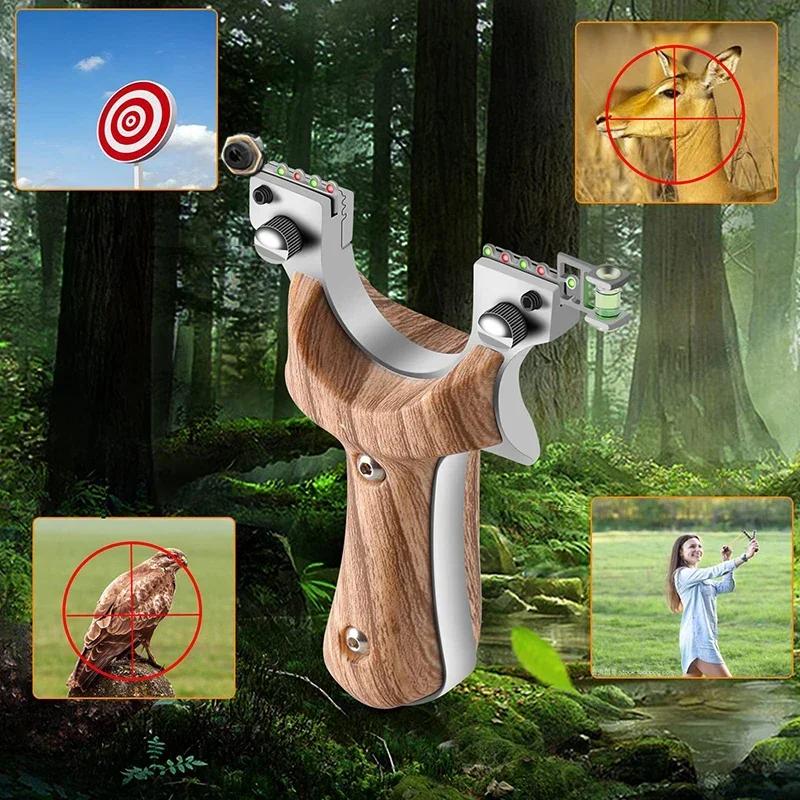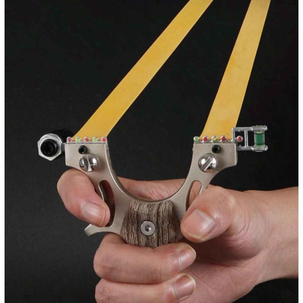 Product Name : Professional - Hunting slingshot - Laser Slingshot - Sports slingshot rubber bandProduct Details: Articles in the Box : Slingshot × 1, spare rubber bands × 2, mechanical sights × 2, screwdriver × 1, hard clay ammunition balls × 100. Professional and Portable : This professional metal slingshot is easy to install and hold, with strong rubber band tension, making it perfect for slingshot enthusiasts and beginners. The pocket - sized design is suitable for adults. Ergonomically Designed Handle : The slingshot is compact and shaped to fit comfortably in the hand, providing powerful and stable shooting. The stainless steel handle with a non - slip guard enhances comfort and ensures precise shooting and a better feel. High - Quality Materials : The rotating head is made of stainless steel, which is corrosion - and scratch - resistant, durable and long - lasting. It is handmade and polished, and the wooden handle is slip - resistant and dirt - repellent, making it easy to operate. Mechanical Aiming and Night Use : The adjustable mechanical sight is suitable for people with different holding habits. The clear glass - fiber aiming points help to quickly master shooting skills. The laser sight can capture the target at night, allowing for precise and easy hits. Dear slingshot enthusiasts, if you have any questions, please contact us by email and we will be happy to help you solve your problems.Technical Specifications: Overall Width : 83mm Inner Width : 44mm Height : 125mm Weight : 100g Material : Alloy + ABS patch